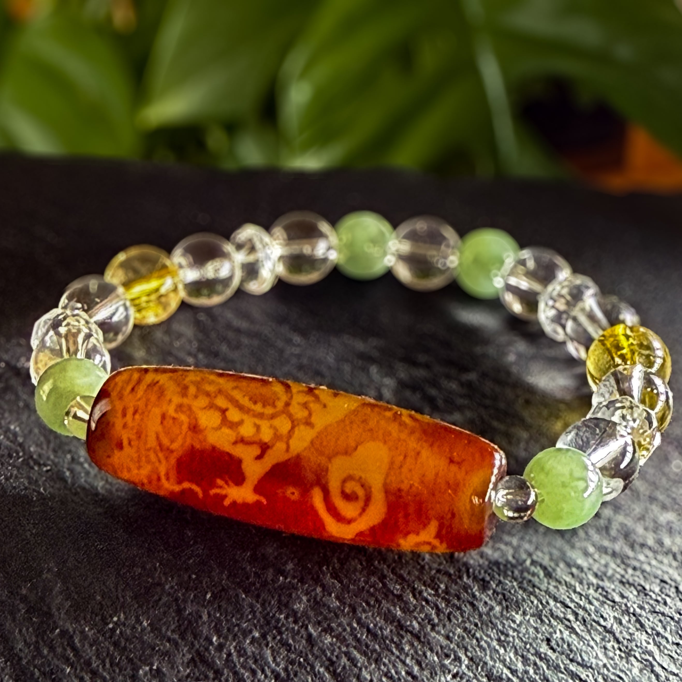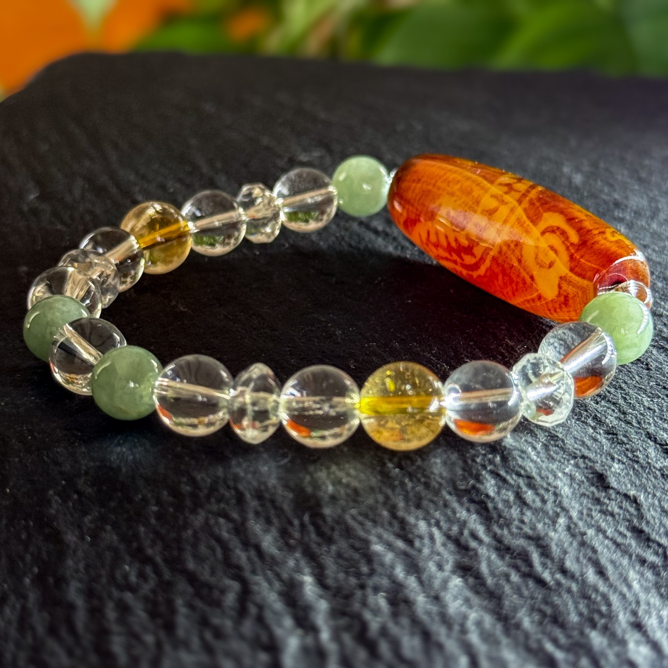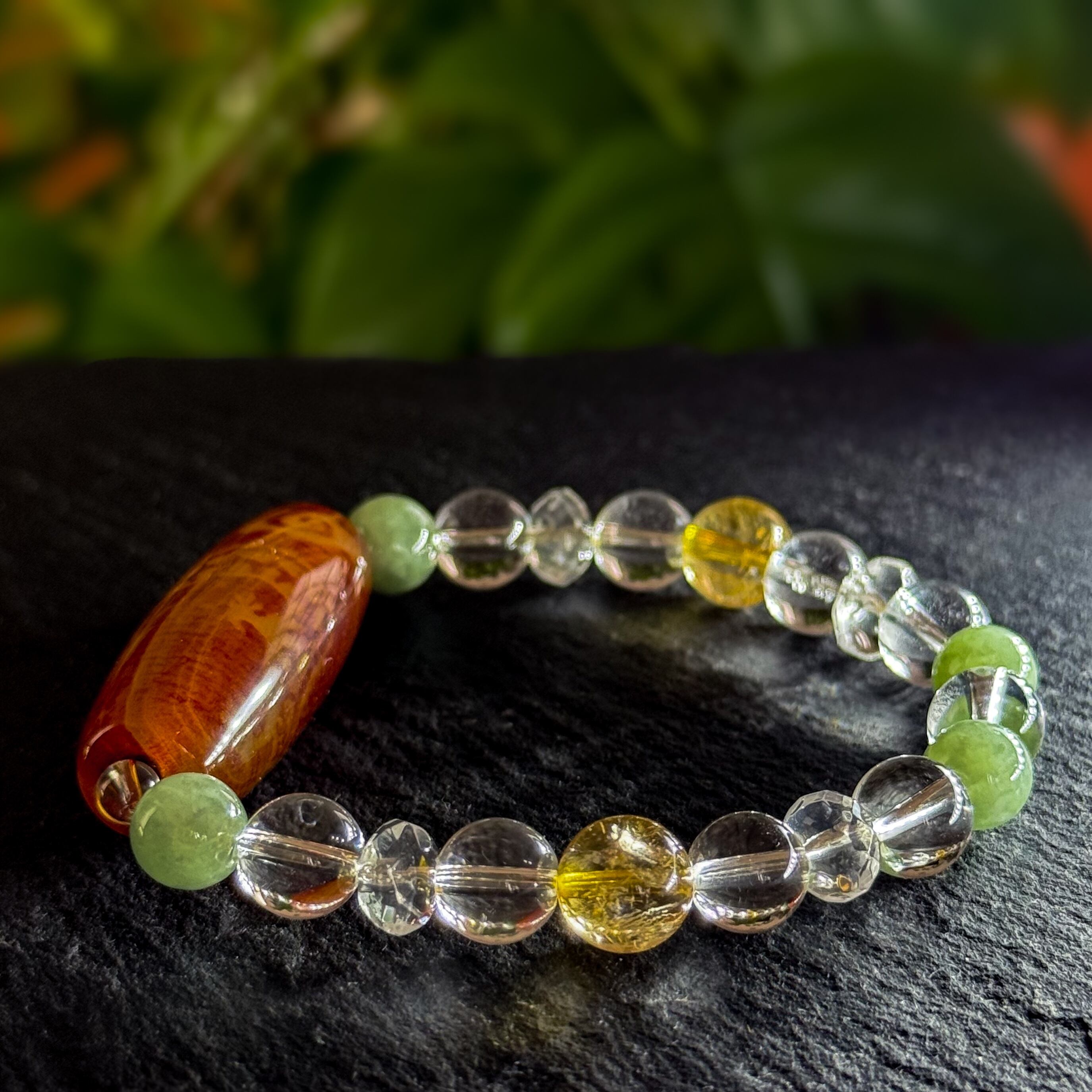 ・翡翠・水晶・シトリンで構成された光波動ブレスレット