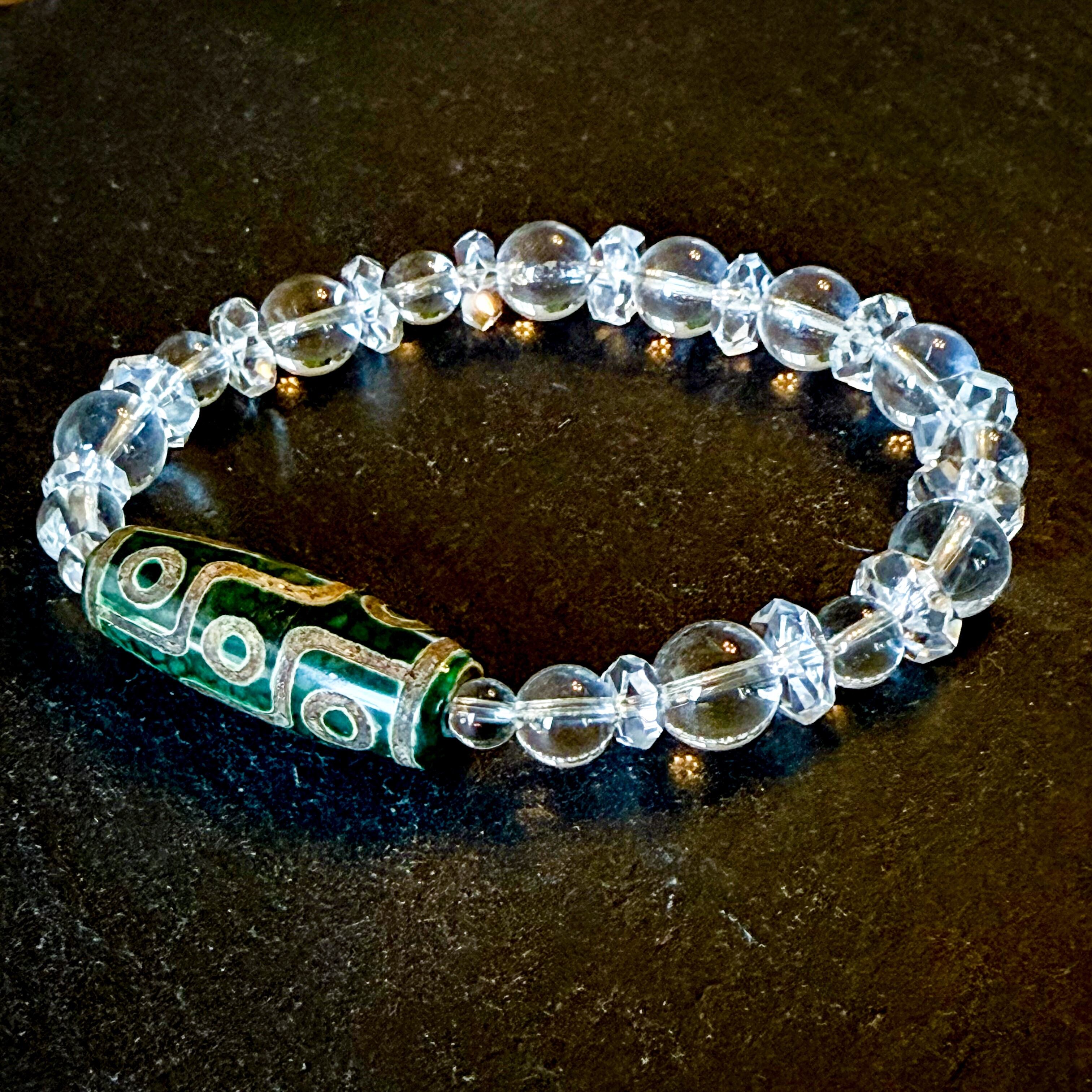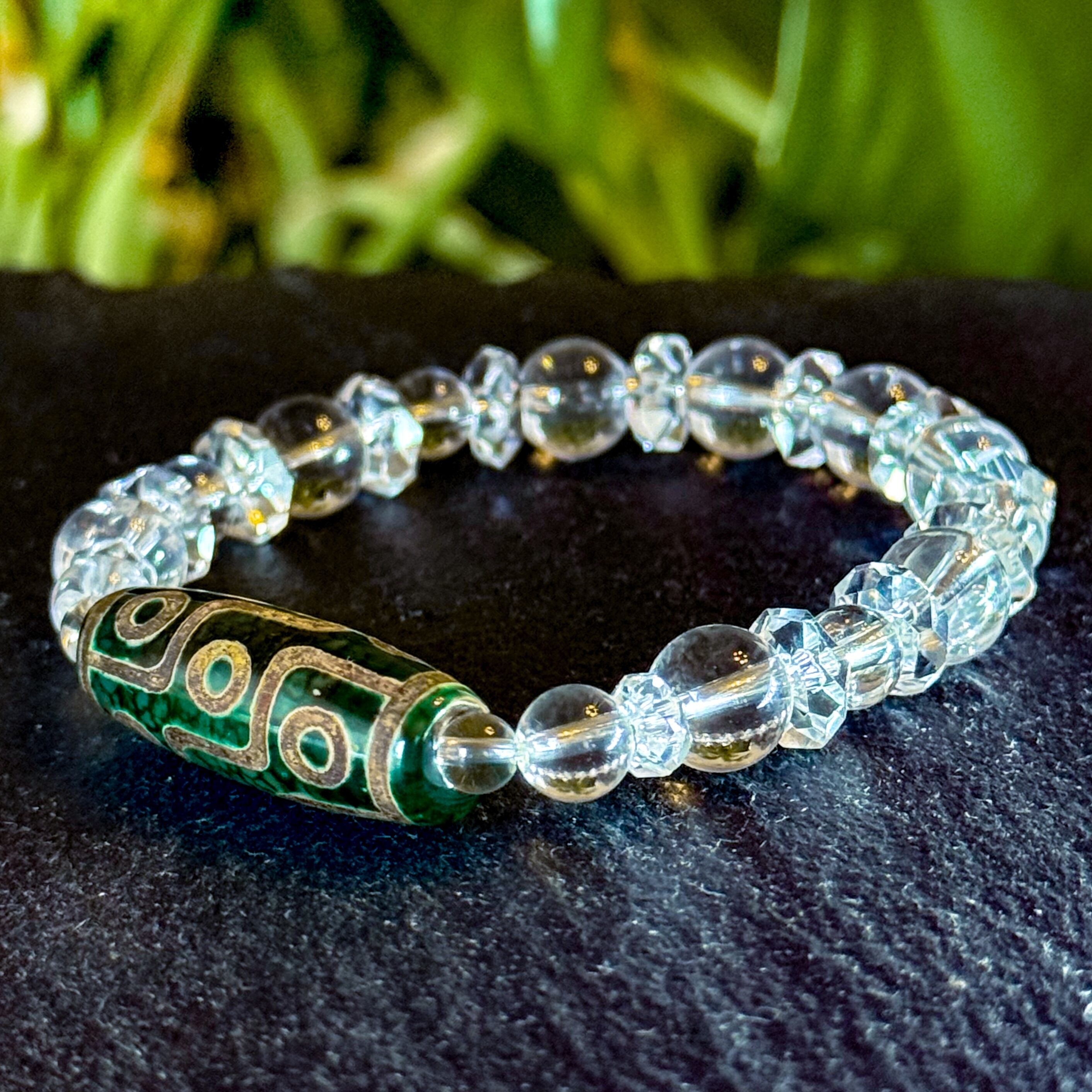 九眼翡翠清光 龍の鱗模様瑪瑙天珠 光波動 ブレスレット 九眼天珠 天珠 水晶 天然石 パワーストーン