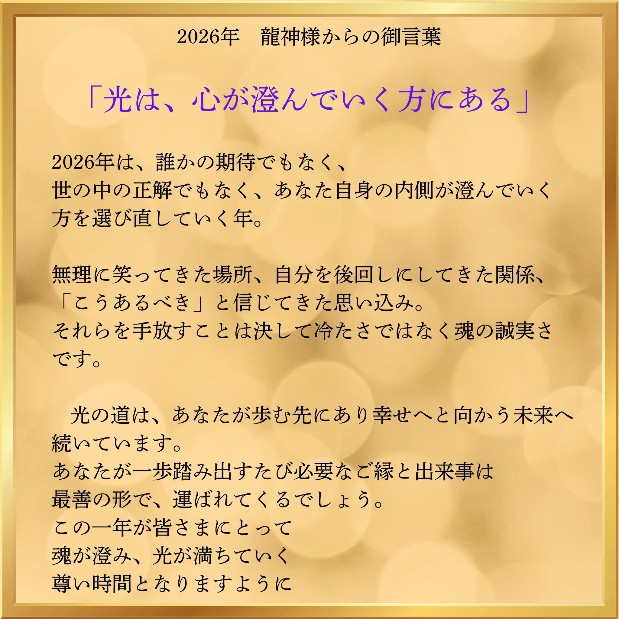2026年は、頑張り続けることで進む年ではなく、心が澄む選択の先に、自然と幸せがつながっていく年。