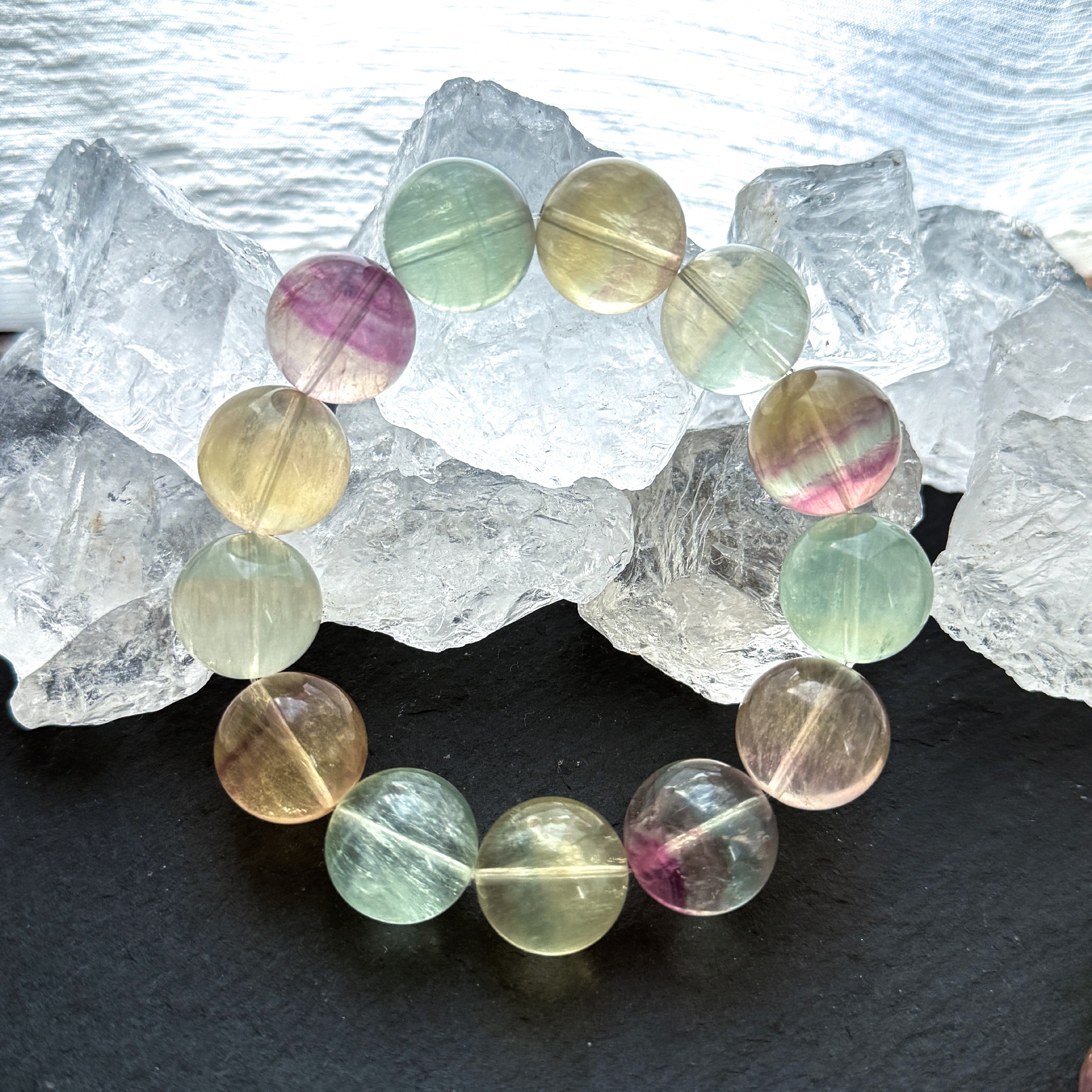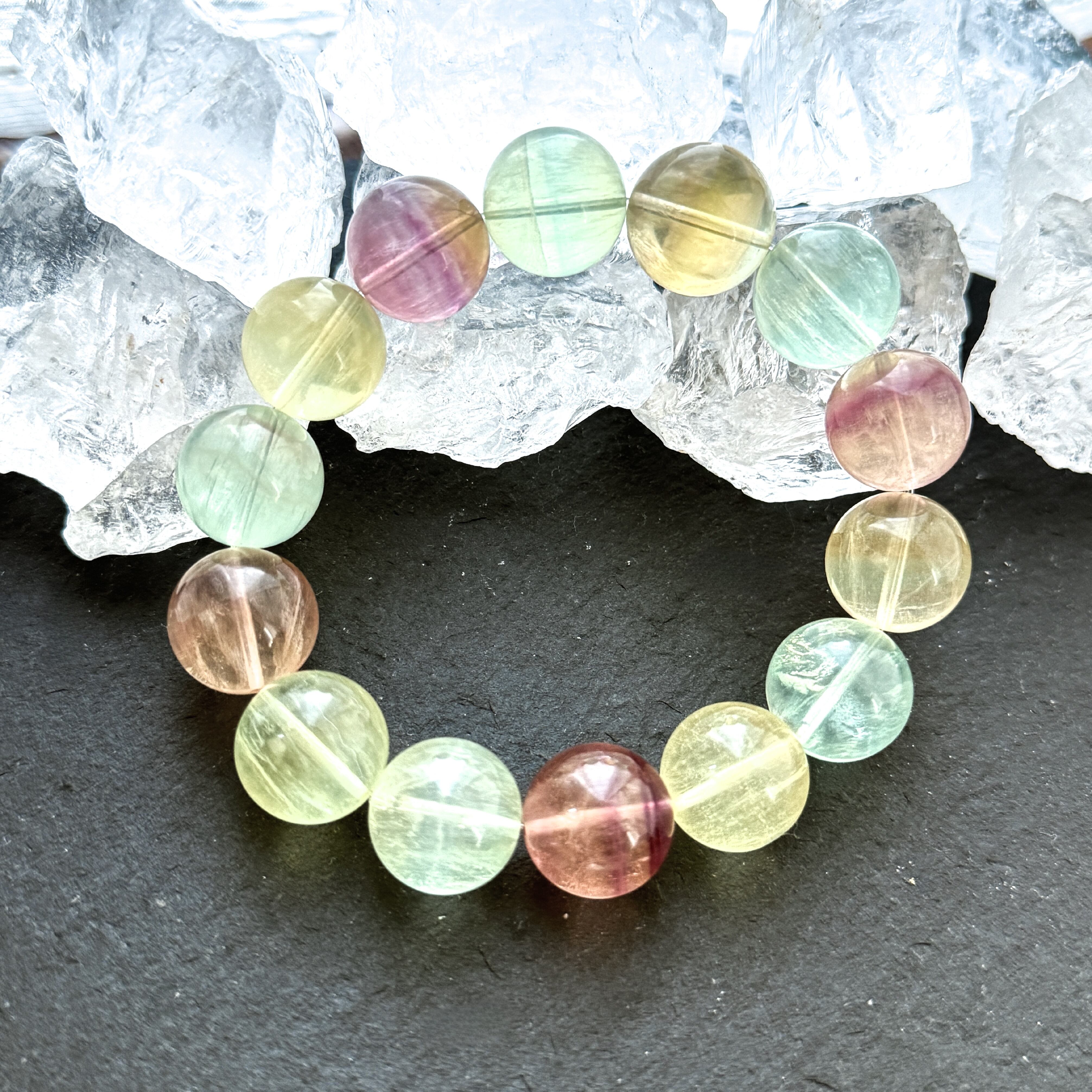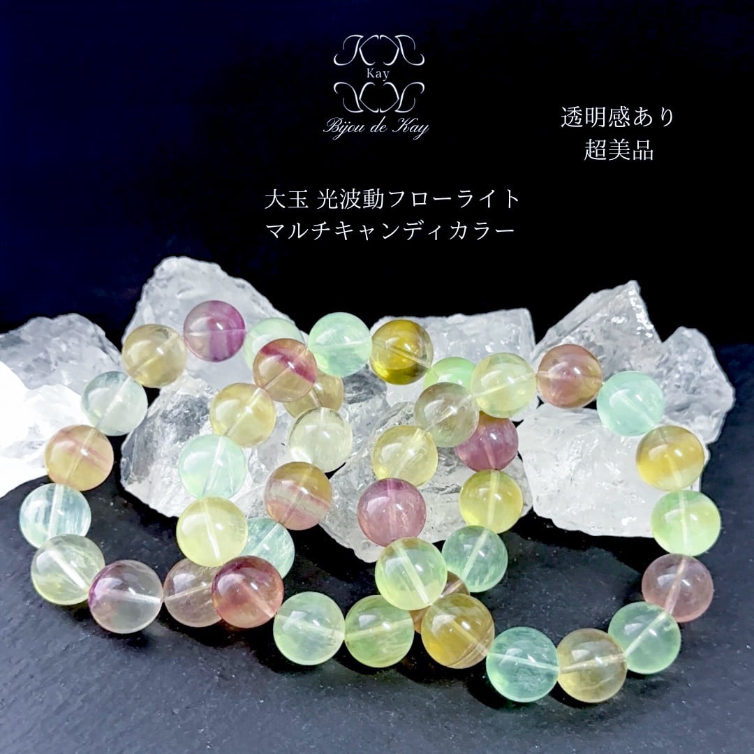 大玉 超美品 マルチキャンディカラー パステルカラー フローライト 光波動 ブレスレット