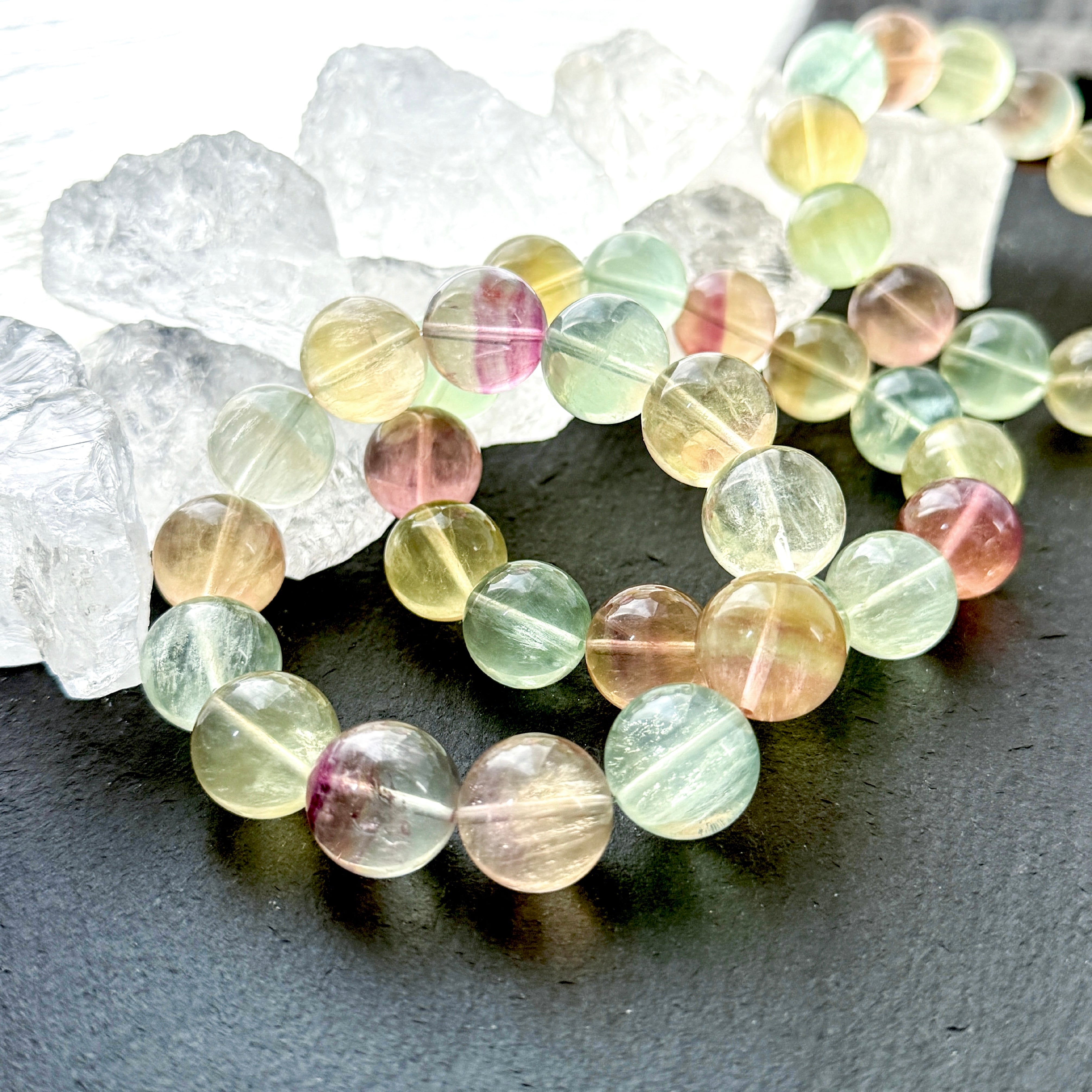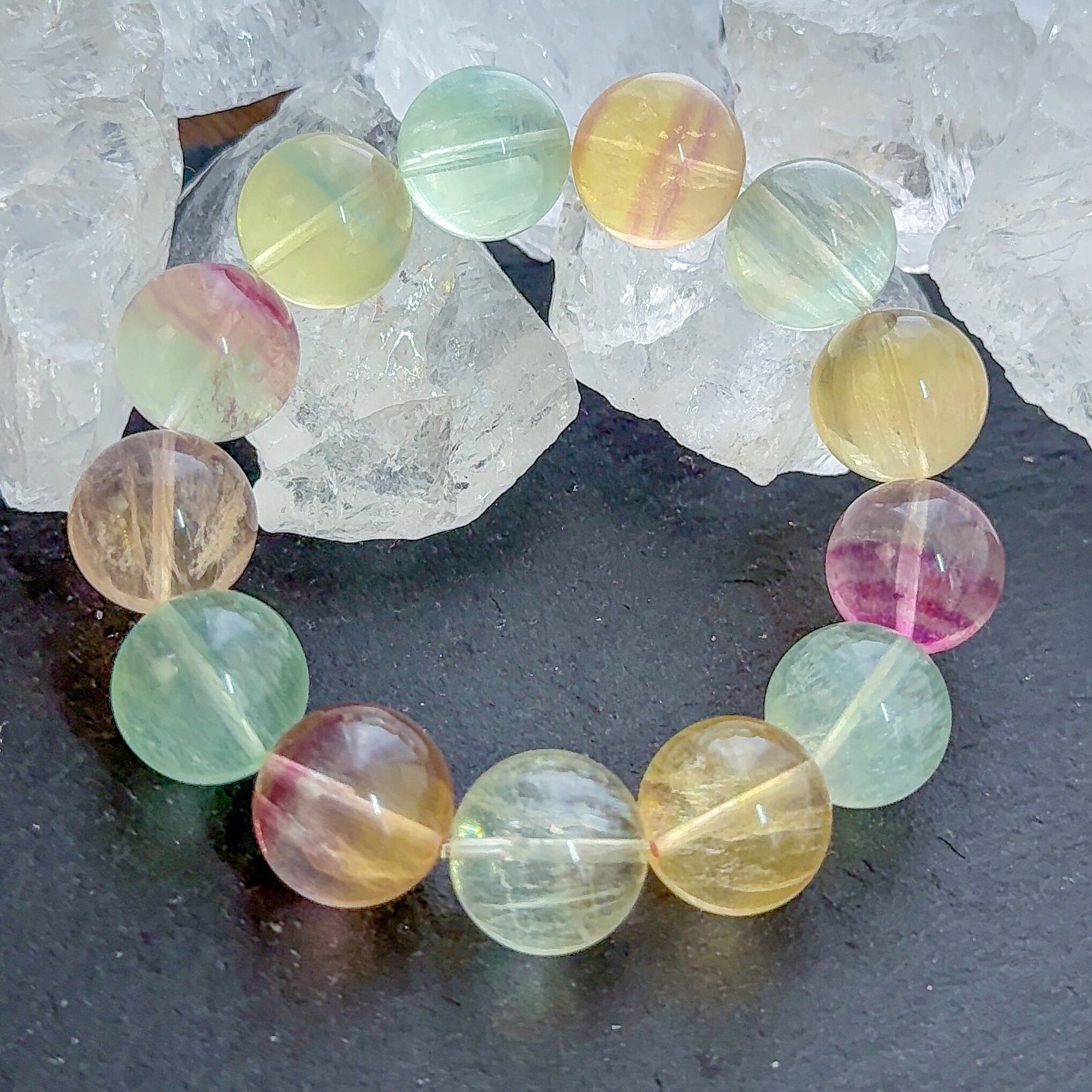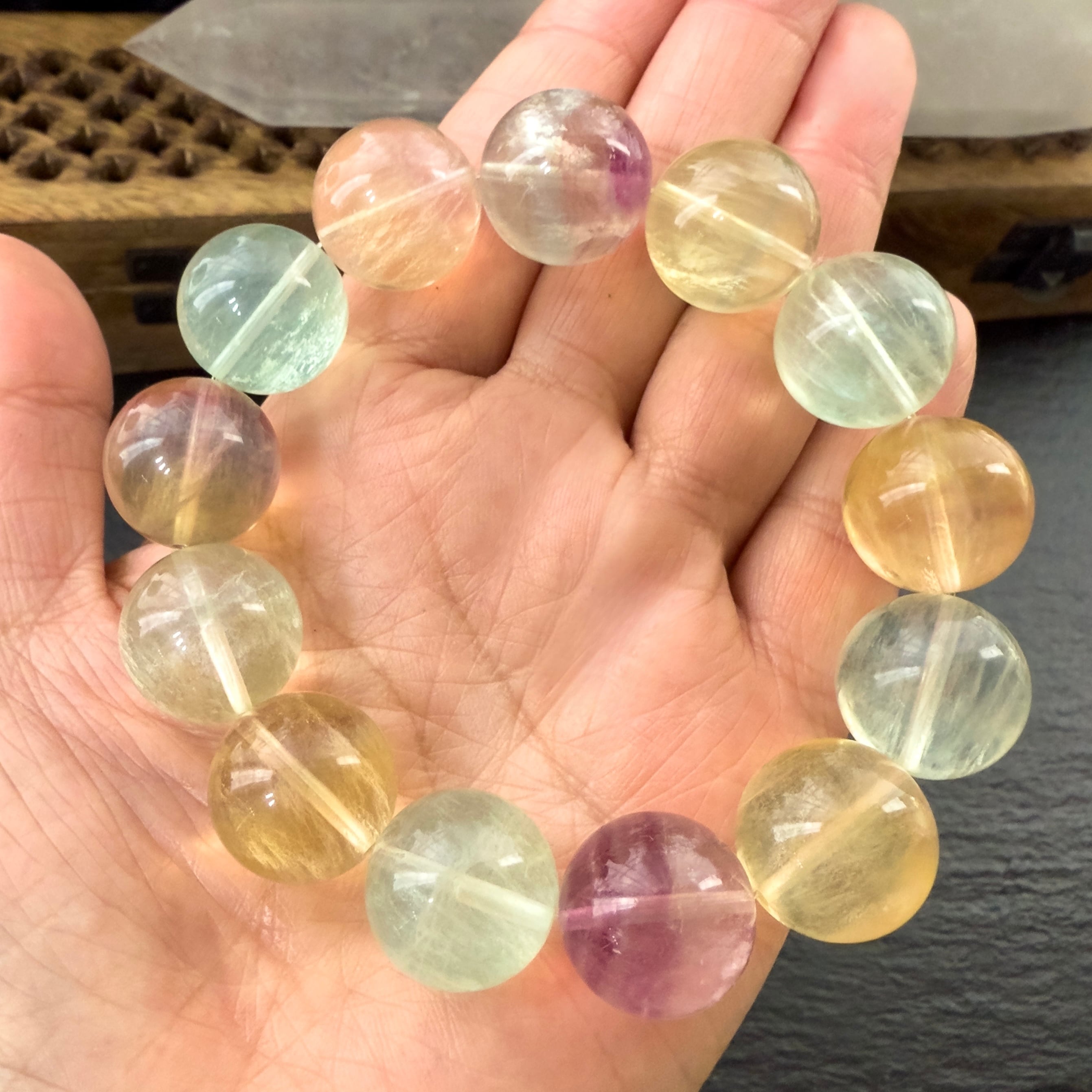 大玉 超美品 マルチキャンディカラー パステルカラー フローライト 光波動 ブレスレット