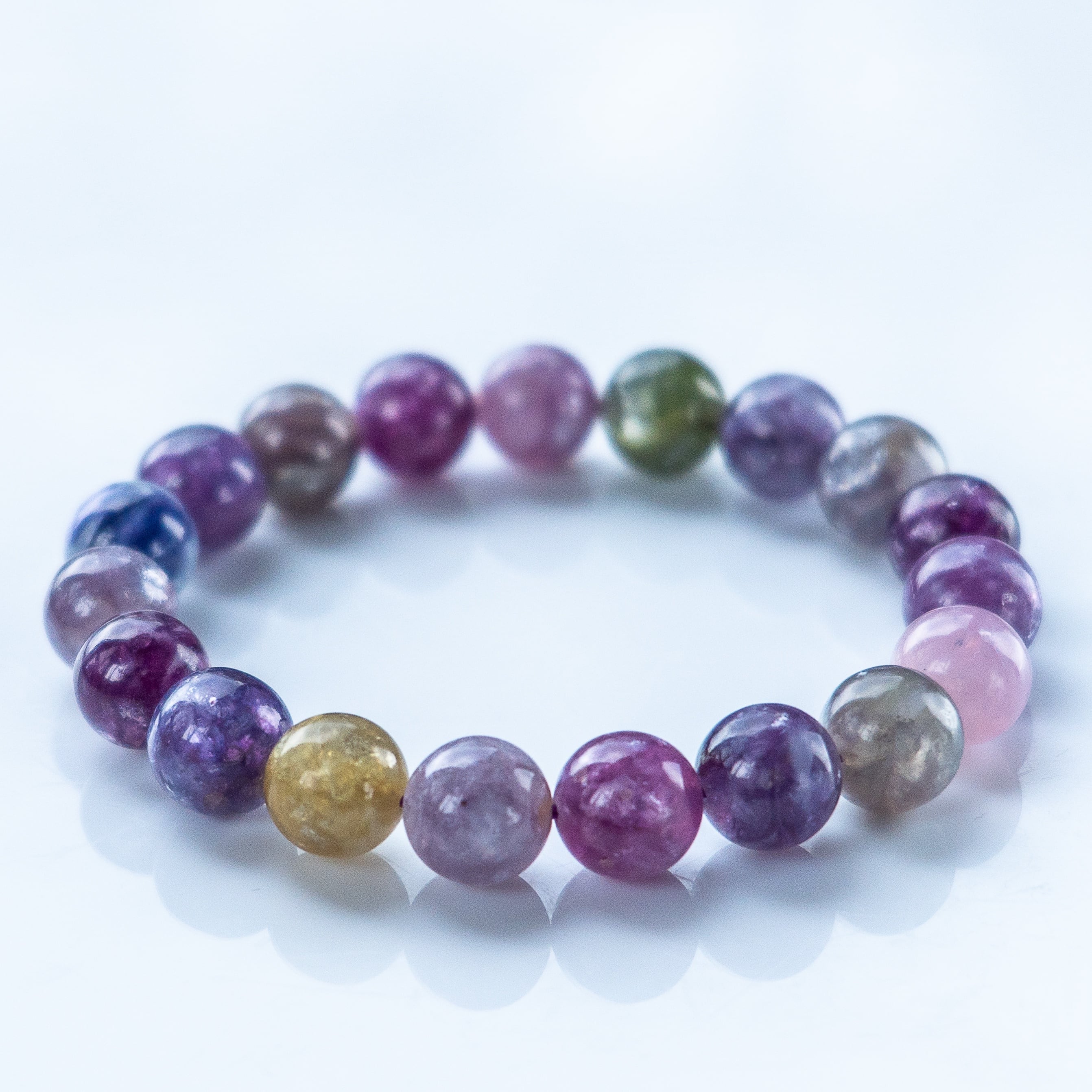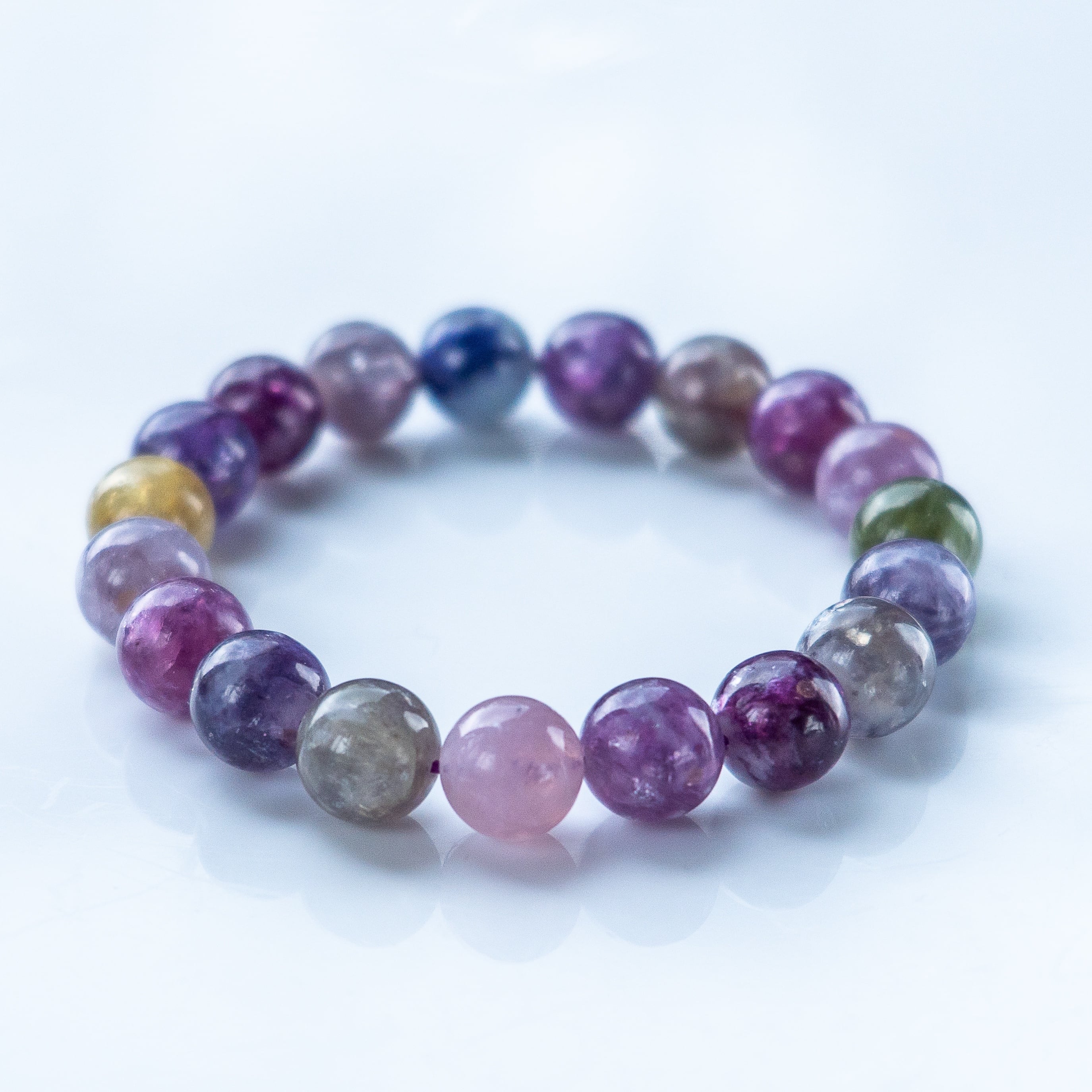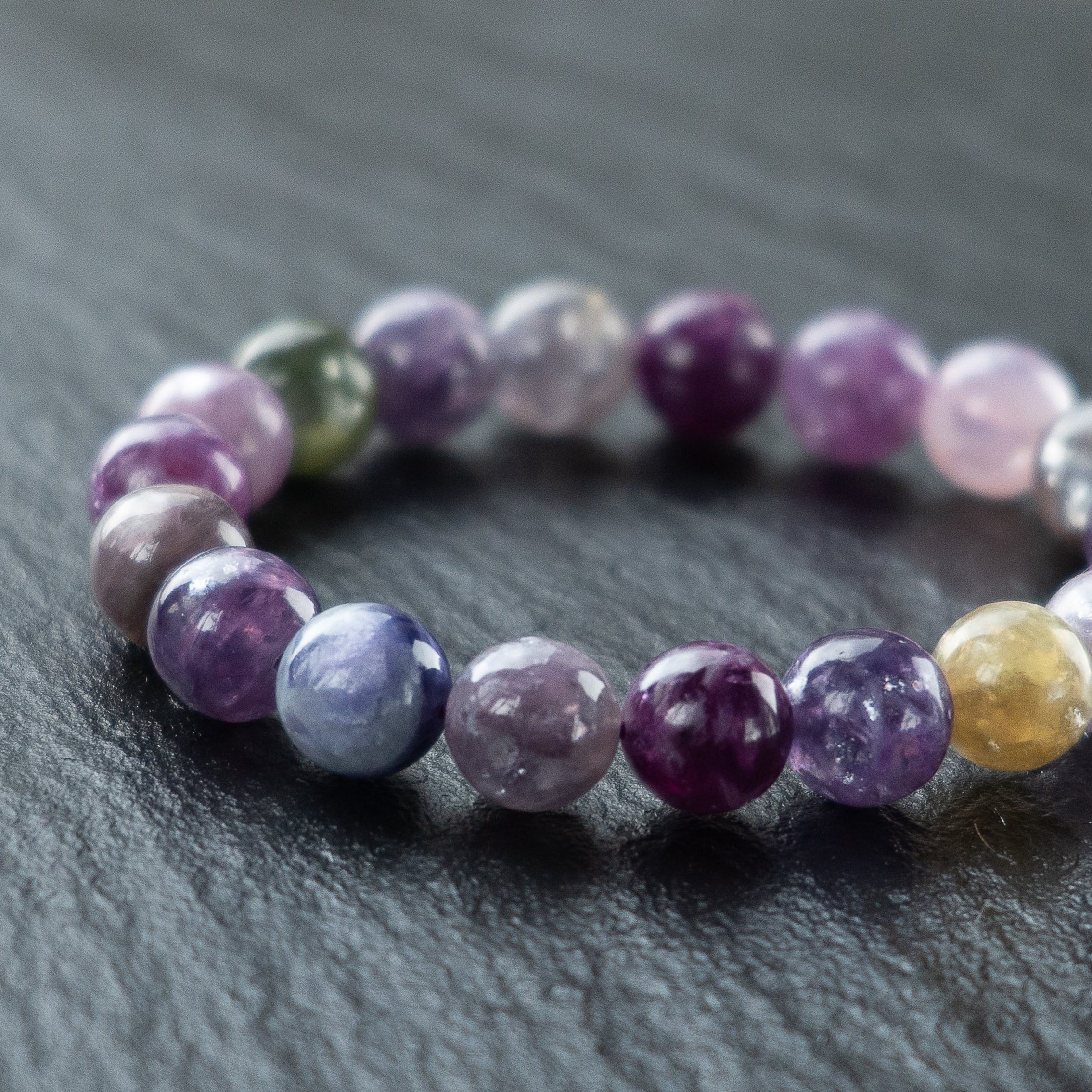 不純物をほとんど含まない高純度の母体に、パープルを基調とした優しい色彩が溶け合うブレスレットです。