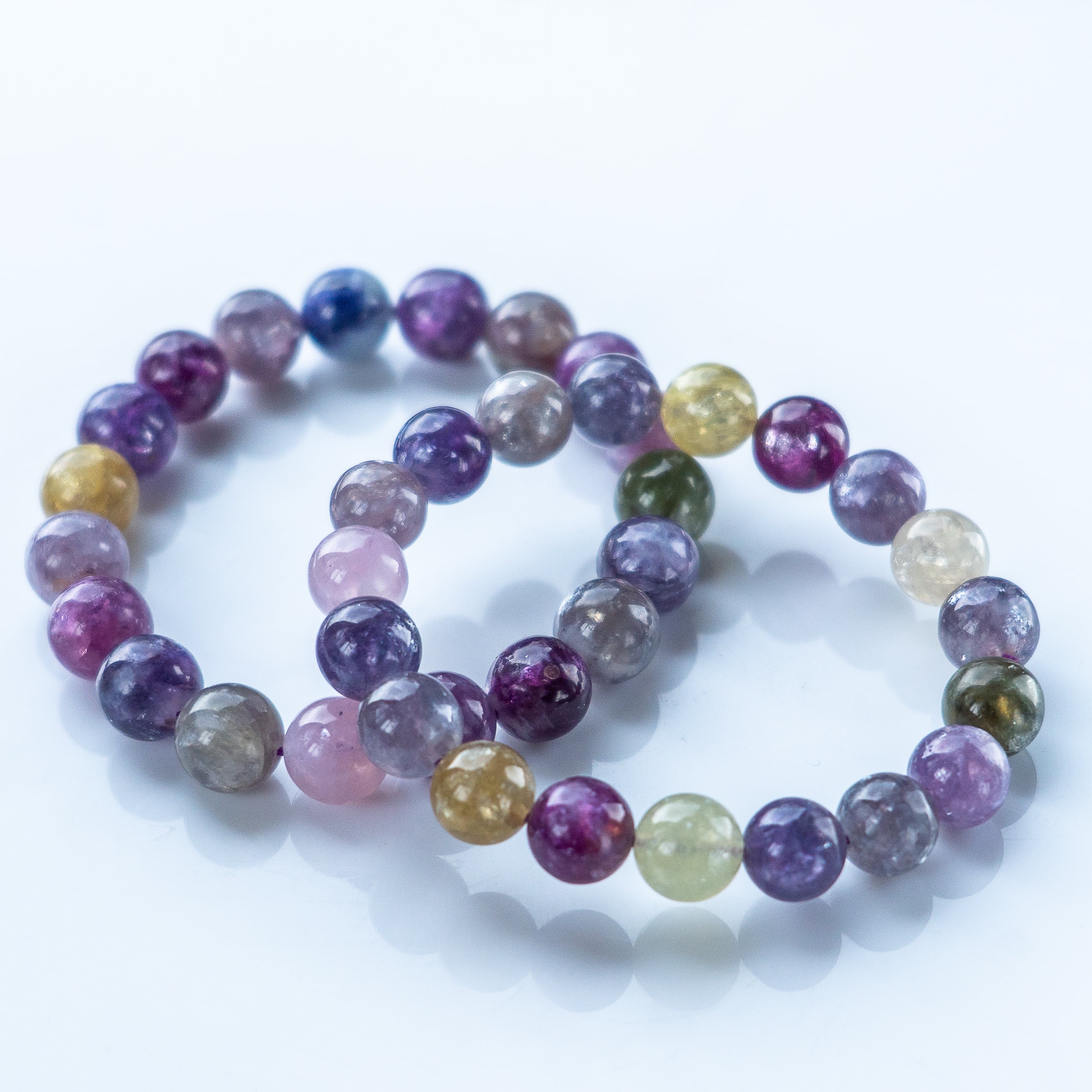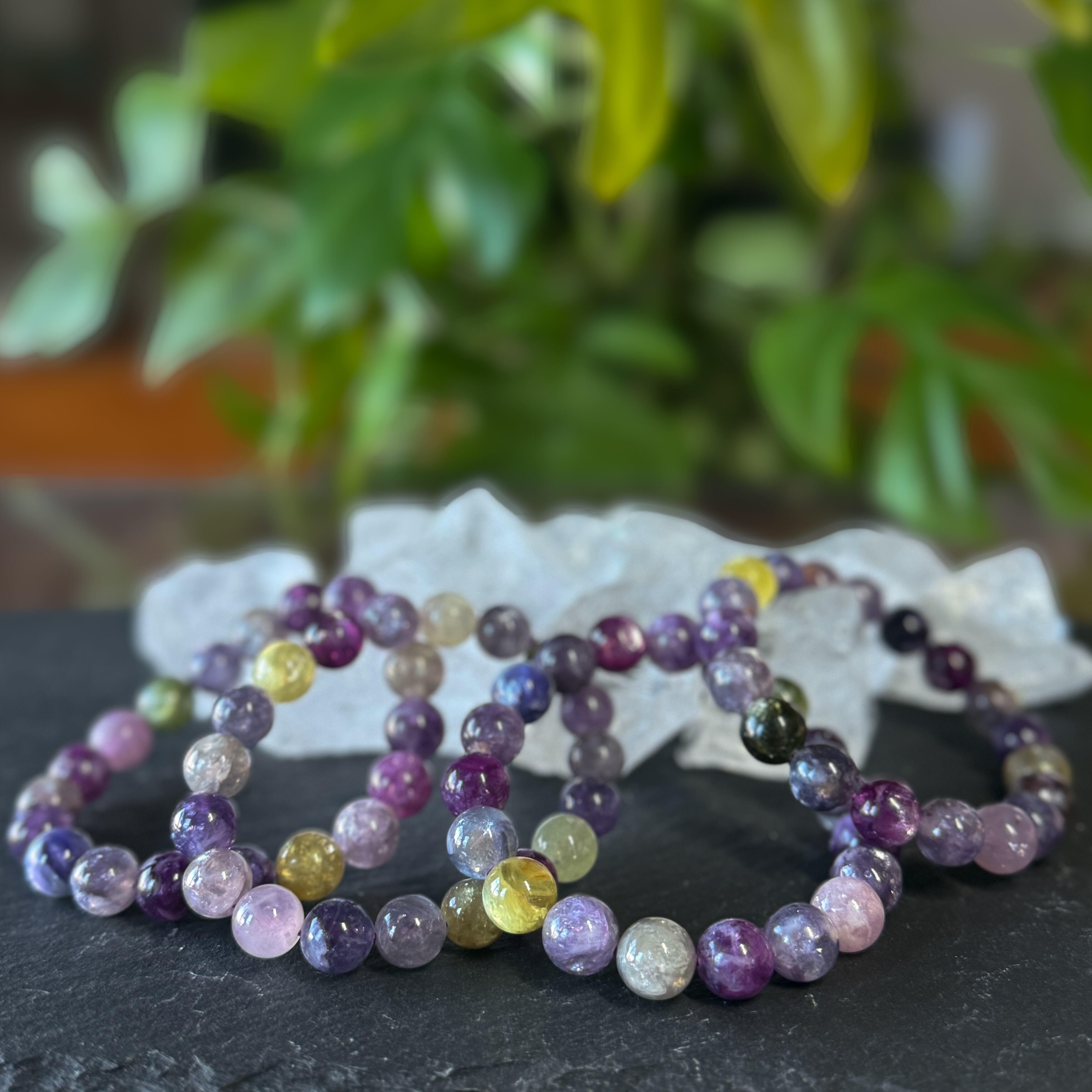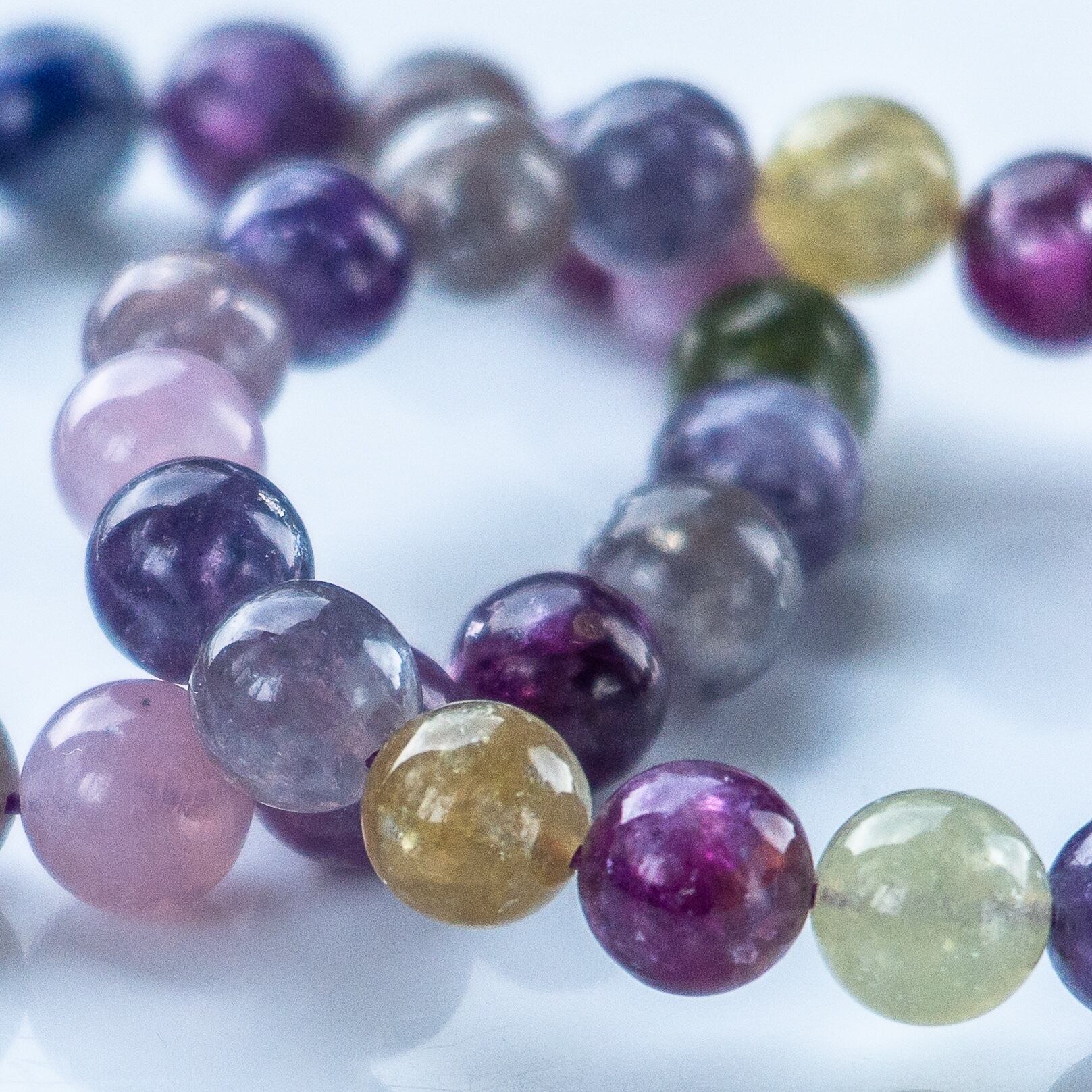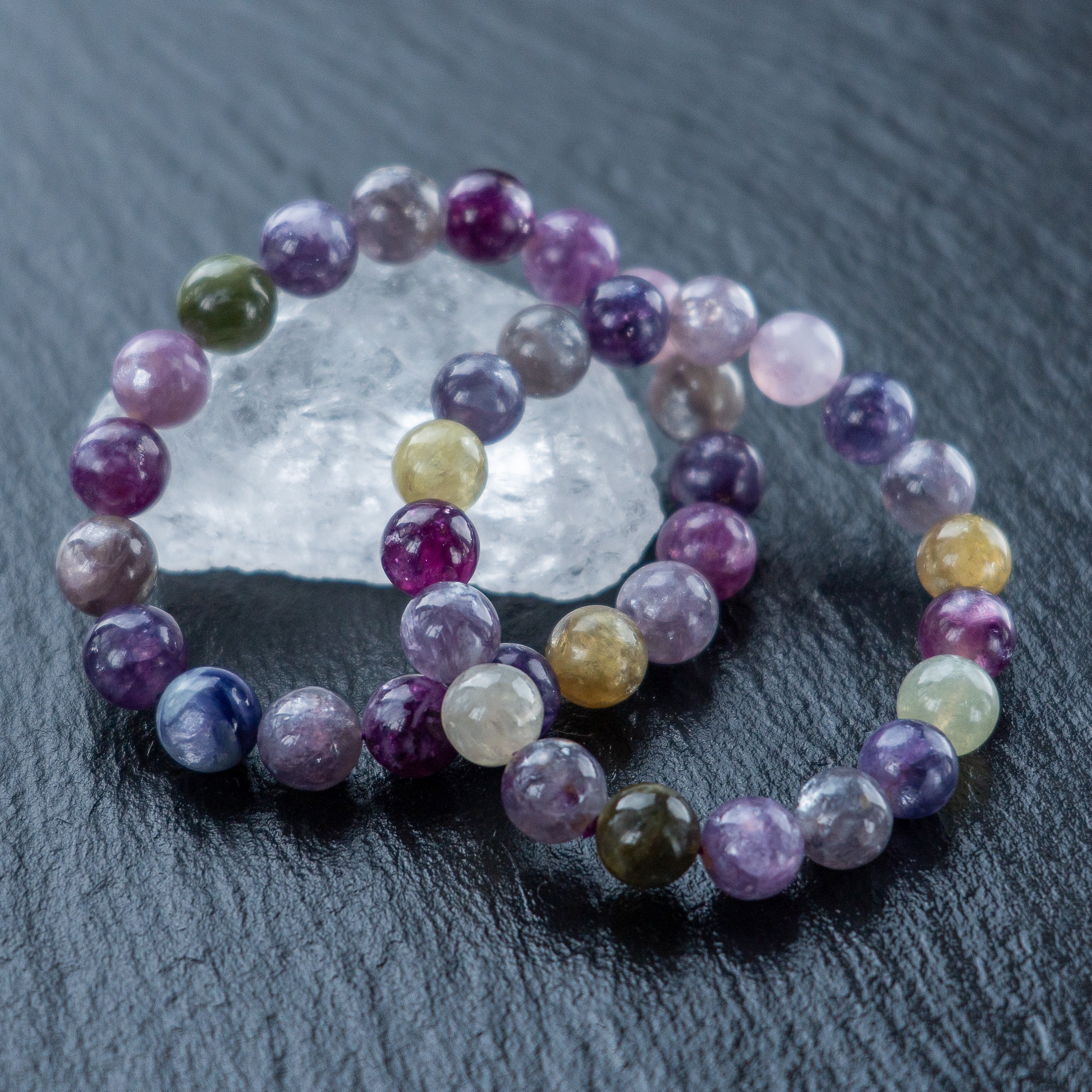 不純物をほとんど含まない高純度の母体に、パープルを基調とした優しい色彩が溶け合うブレスレットです。