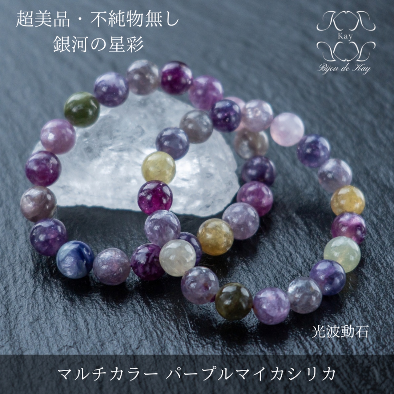 銀河の星彩 極上 マルチカラー パープルマイカシリカ ブレスレット 不純物なし 最高発色 天然石 光波動 ブレスレット