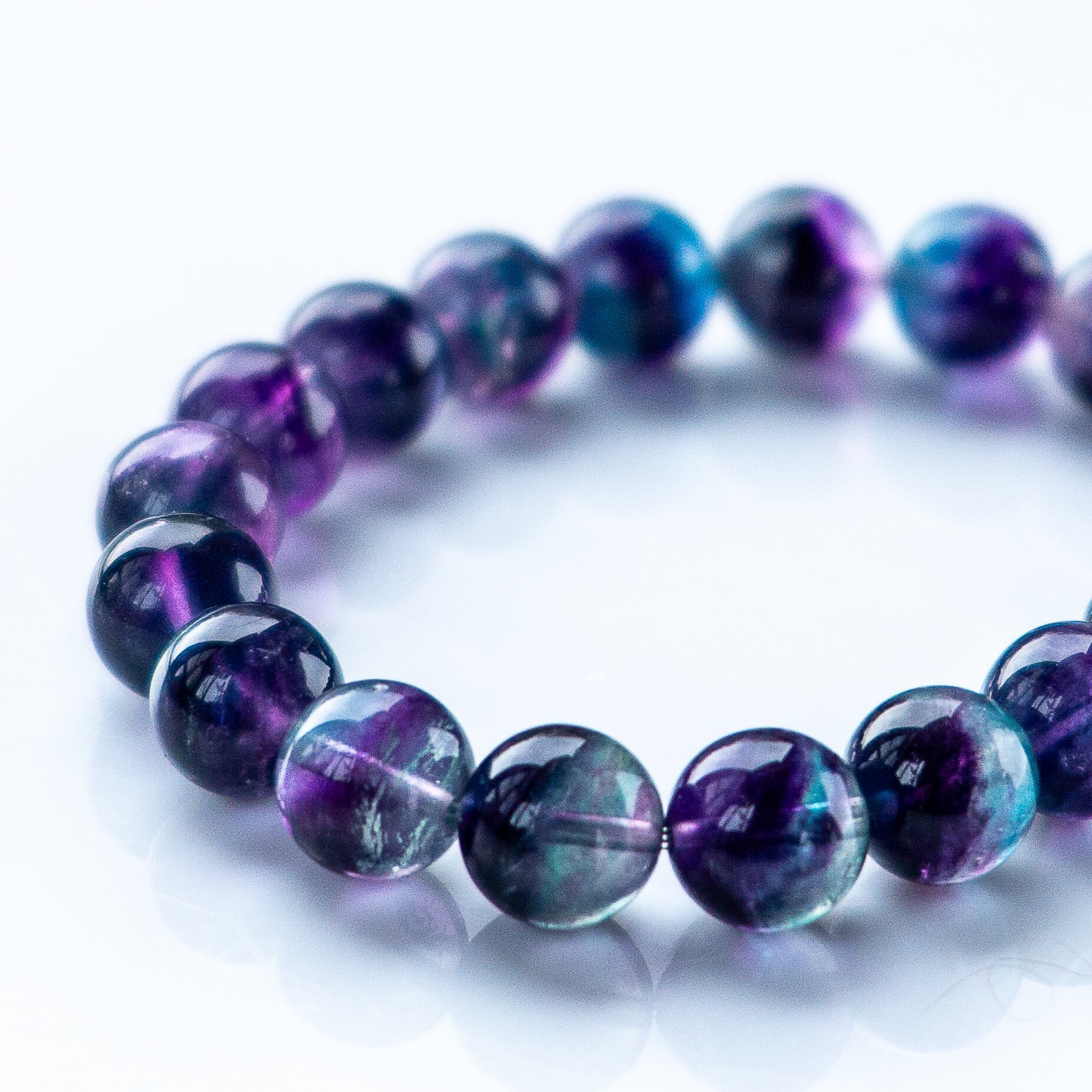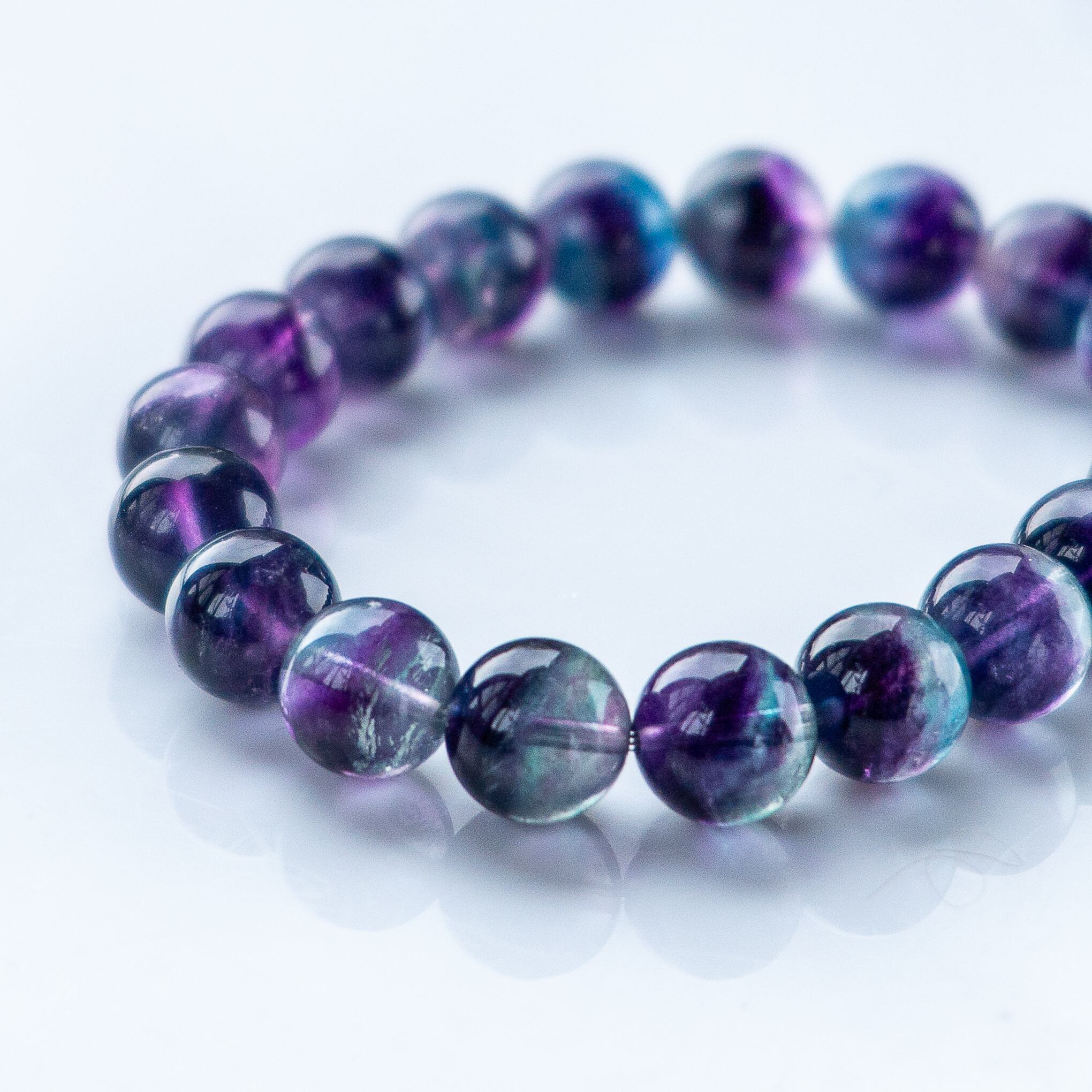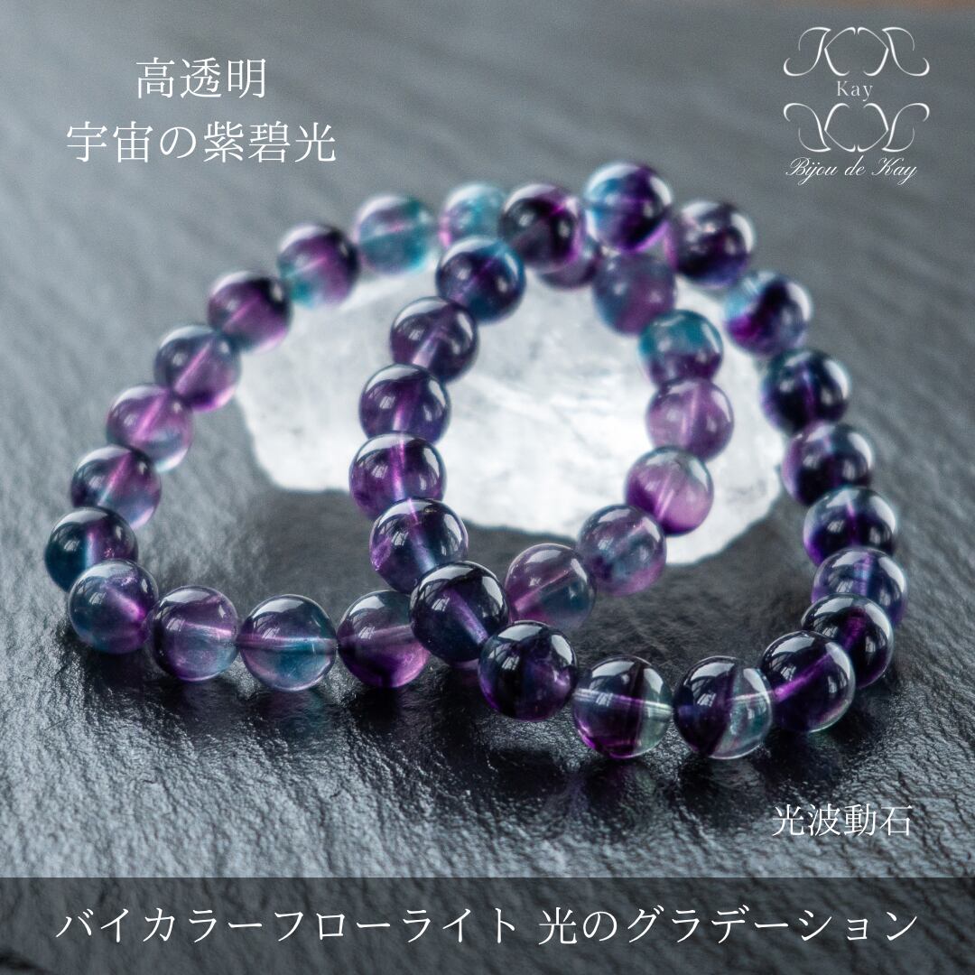 宇宙の紫碧光 澄み渡る光のグラデーション 高透明 バイカラー フローライト 光波動 ブレスレット