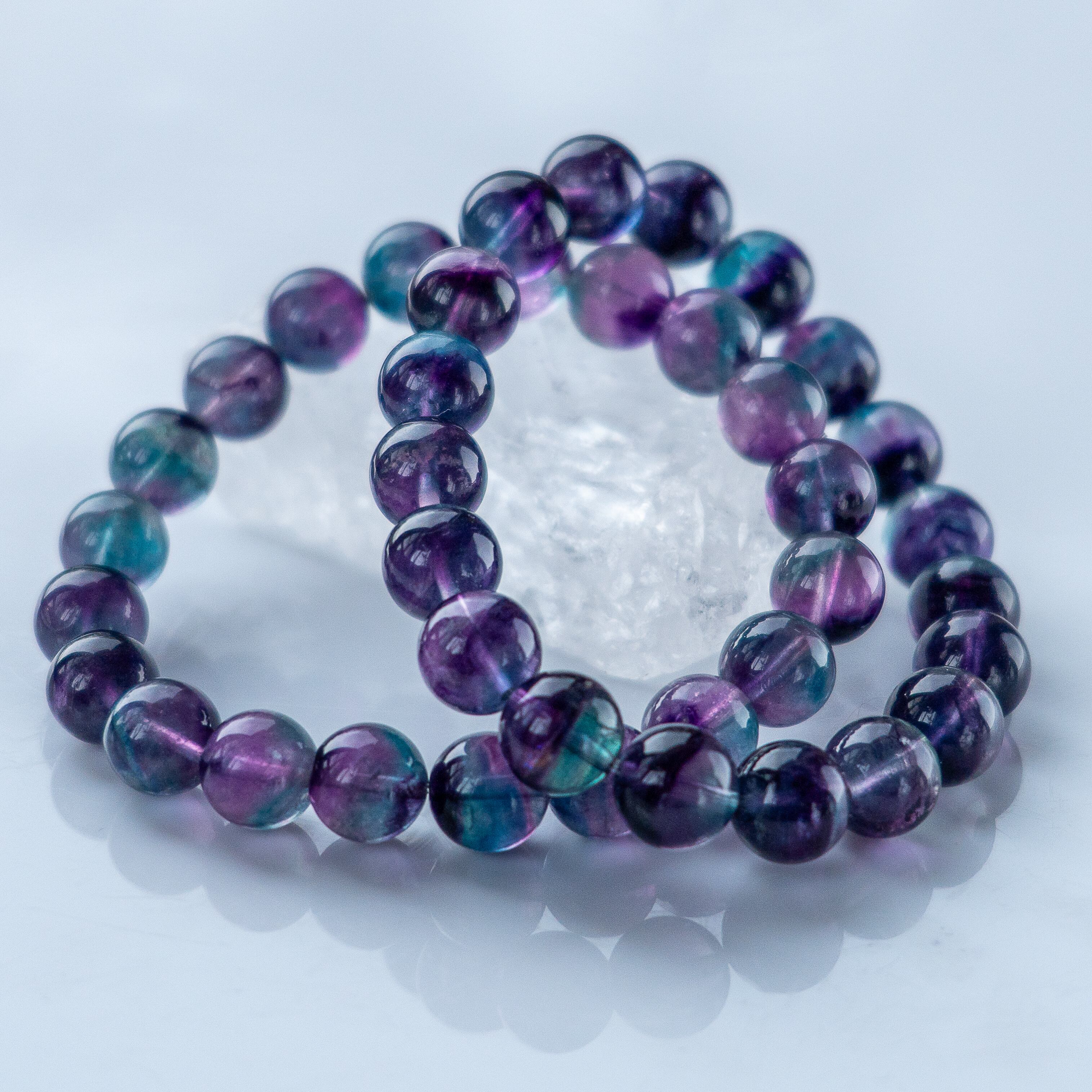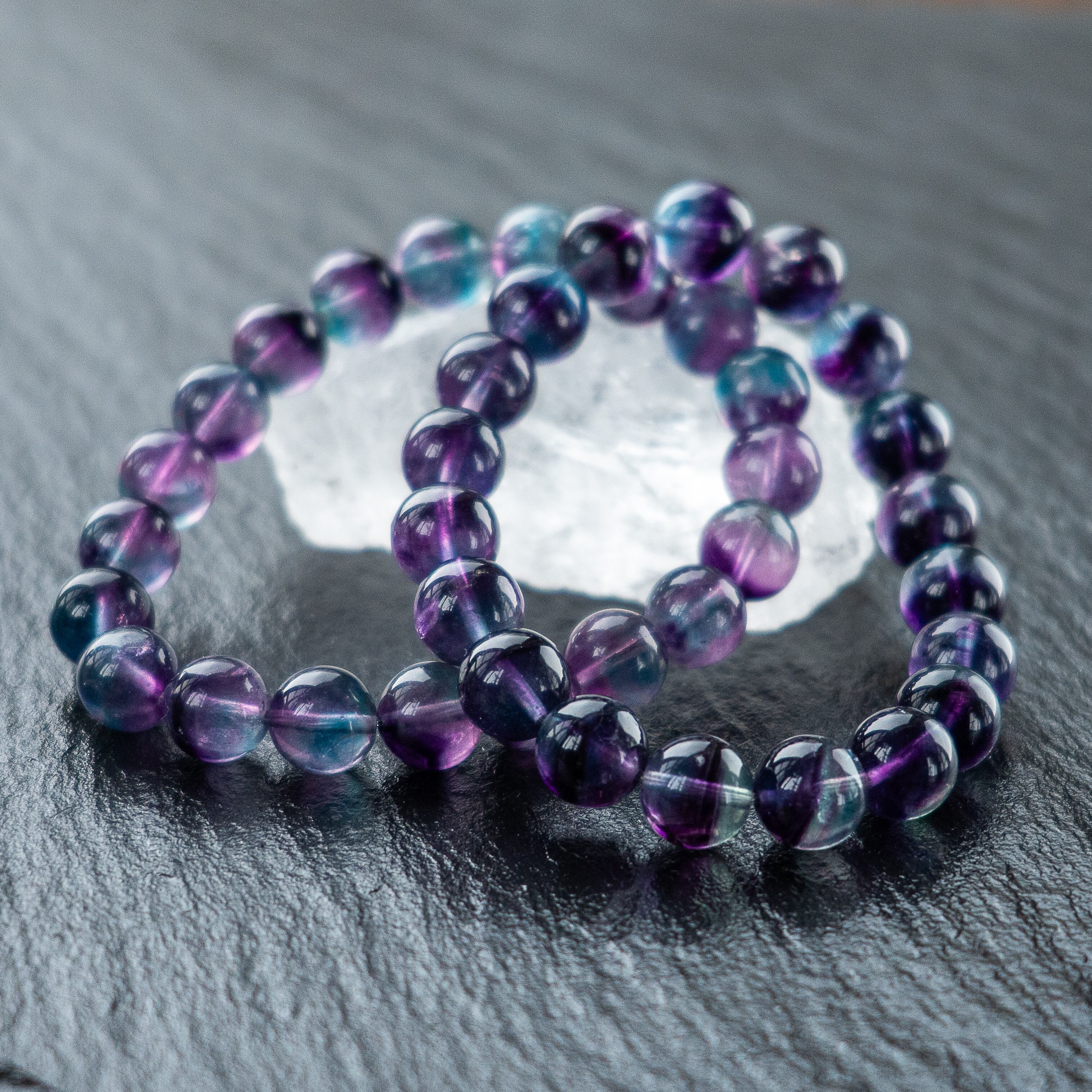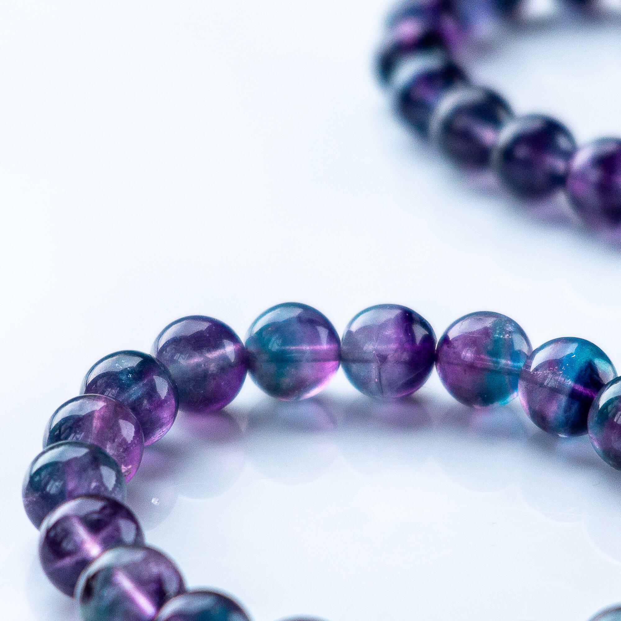 宇宙の紫碧光 澄み渡る光のグラデーション 高透明 バイカラー フローライト 光波動 ブレスレット