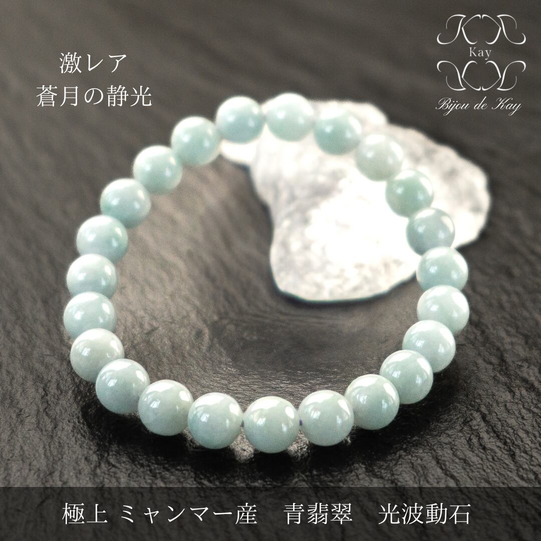 激レア 蒼月の静光 極上 ミャンマー産 青翡翠 光波動石 翡翠 ブレスレット ヒスイ