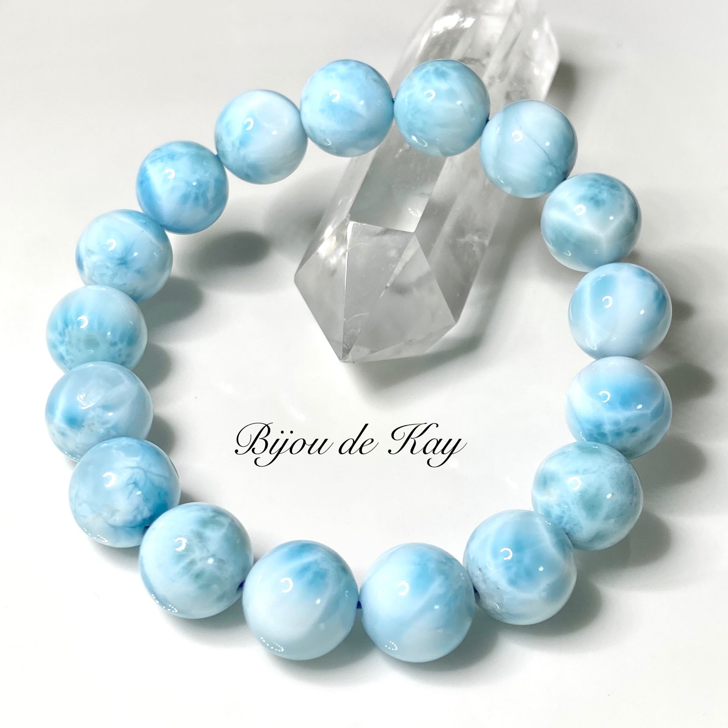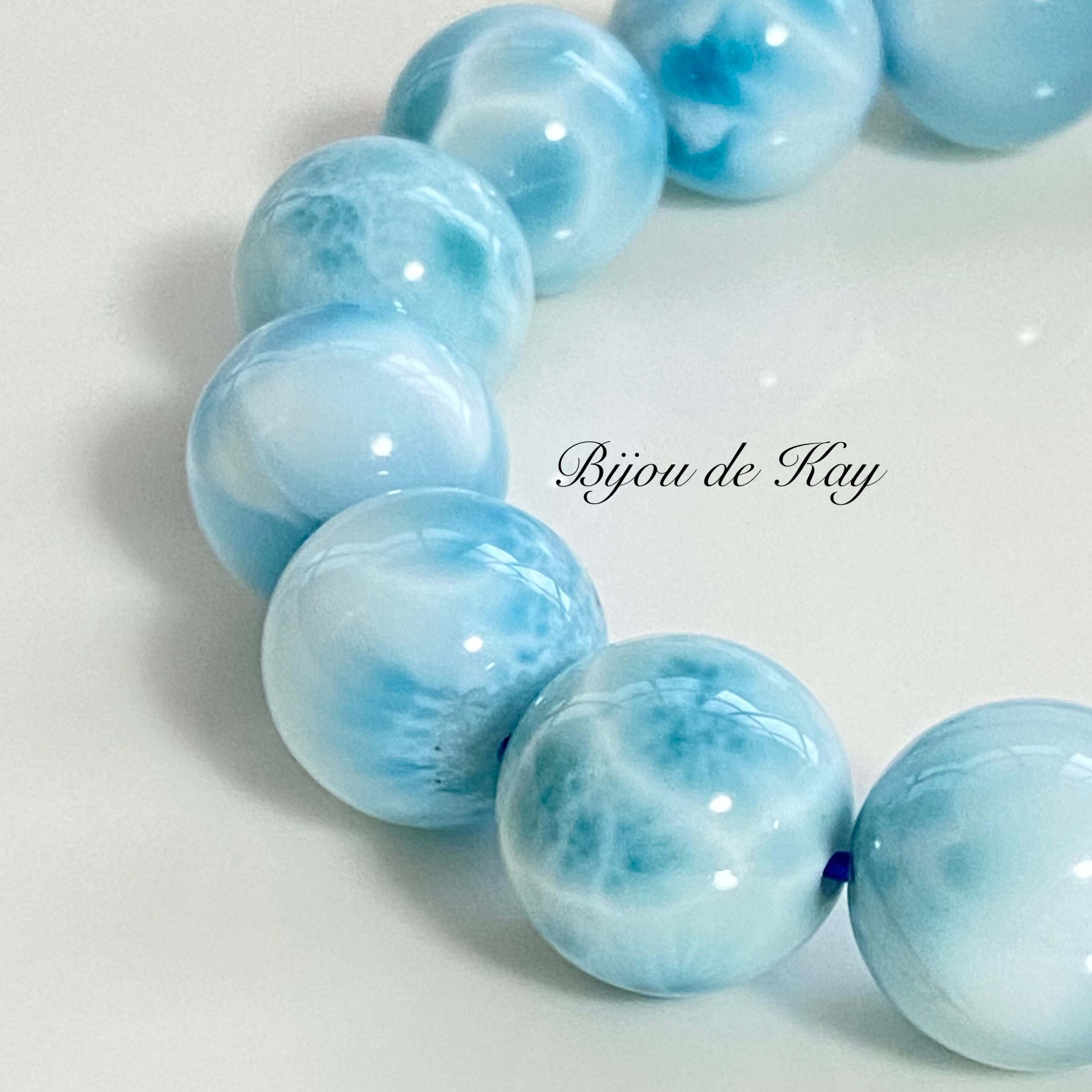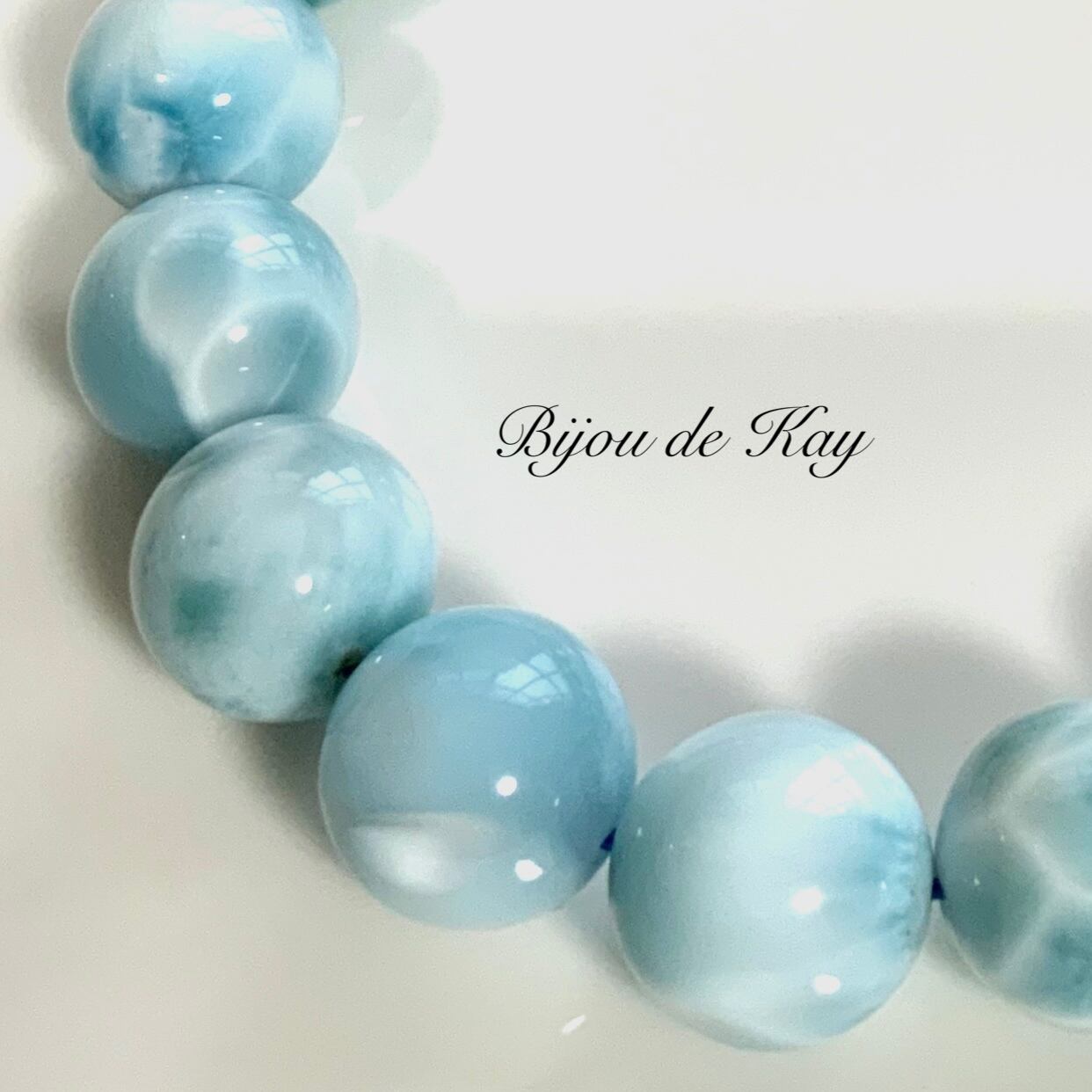 世界三大ヒーリングストーンである「ラリマー」の12㎜玉を17玉使用したブレスレットです。