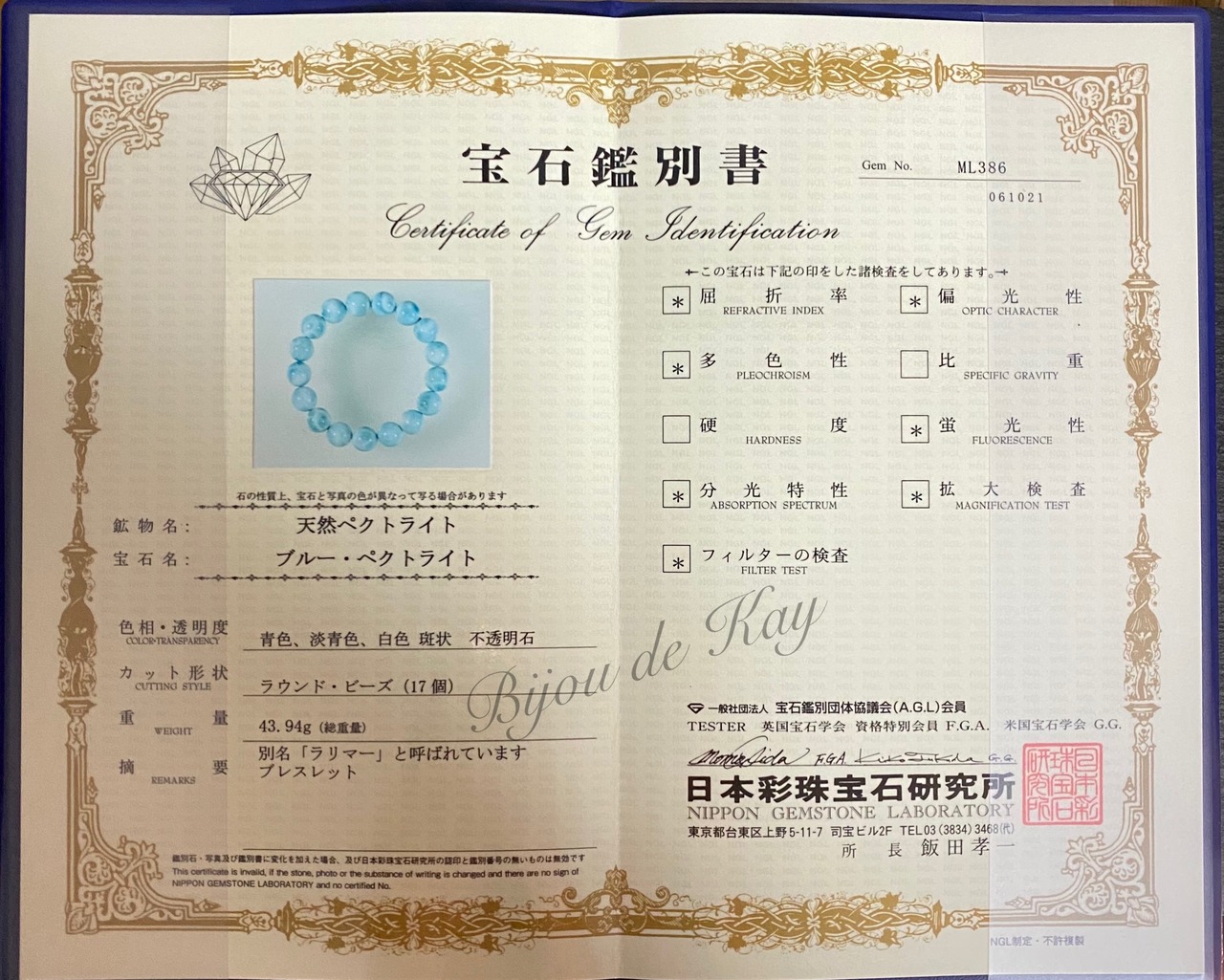 極上ラリマーブレスレット★ 鑑別書付き! 天然石 パワーストーン