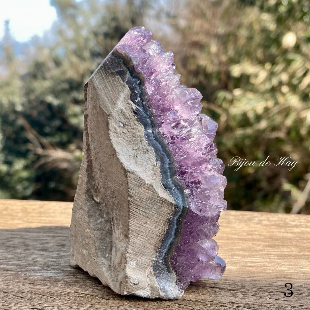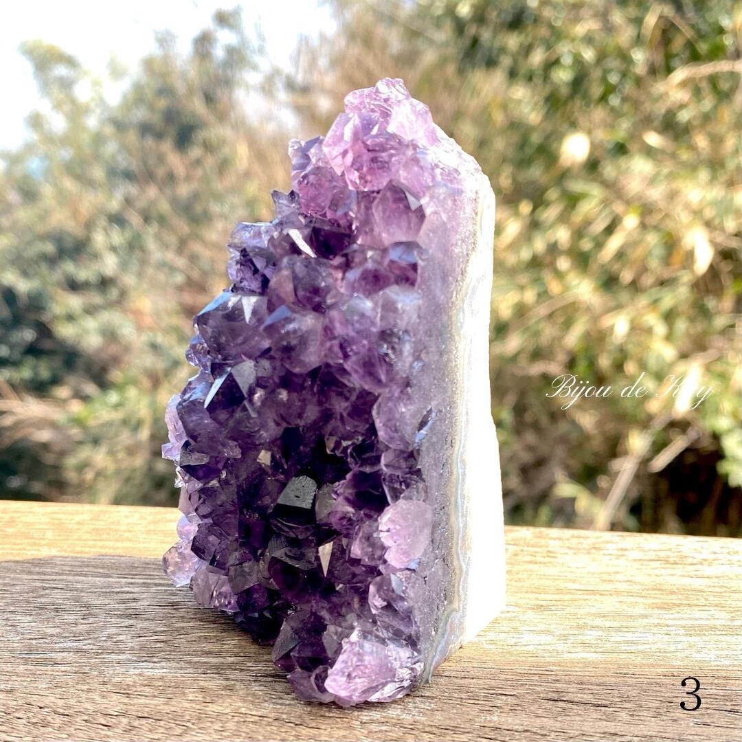 母岩から水晶が生える感じや、成長するにつれて紫色に変わっていく様子を見ていると神々しいです。