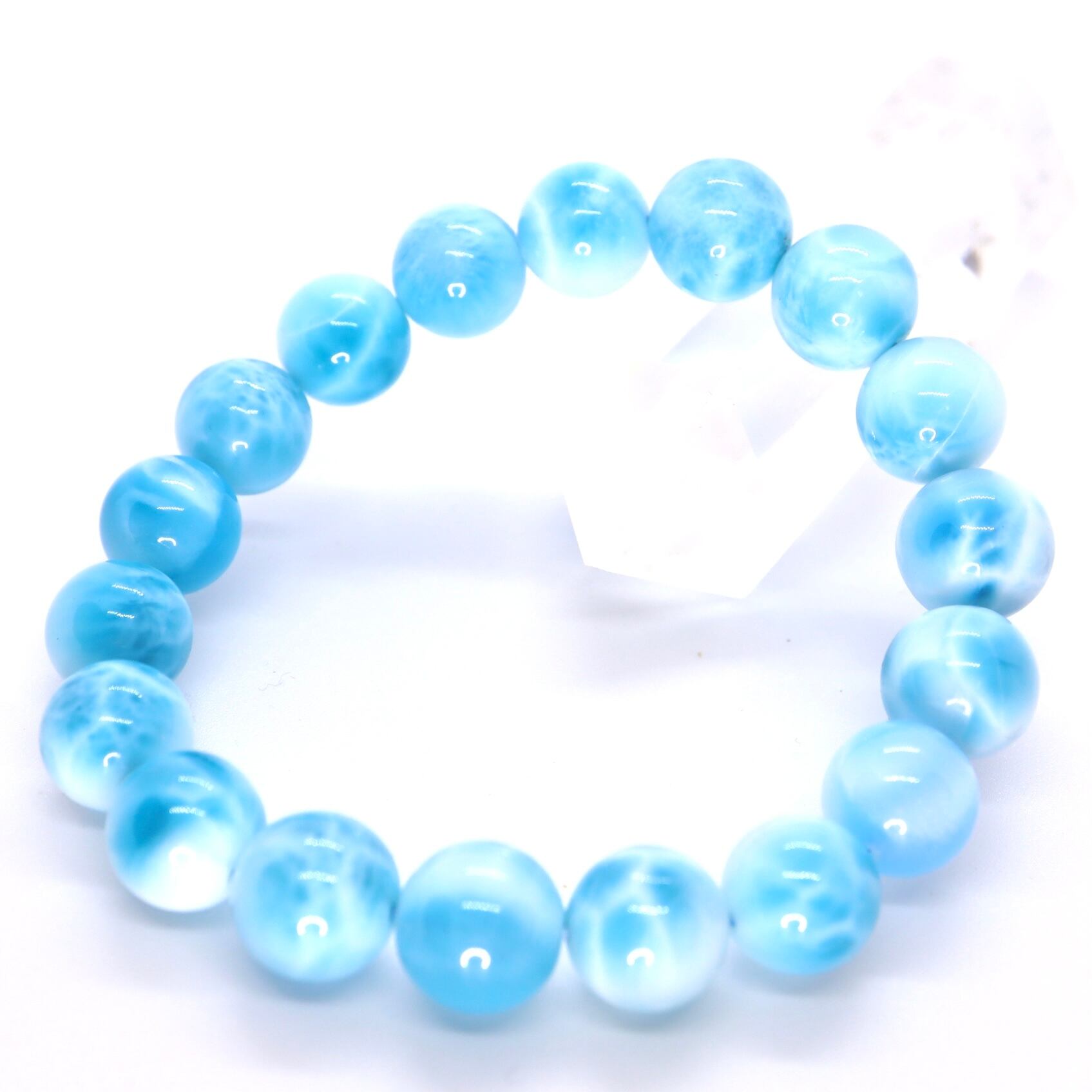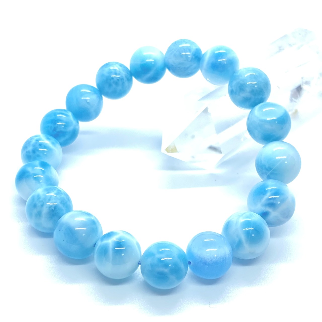こちらのラリマーは宝石と思わせるほど大変品質がよく透明感もあり、どの石も白と青のバランスも良く、美しいオーシャンブルー。グリーンの部分は全く見られません。
