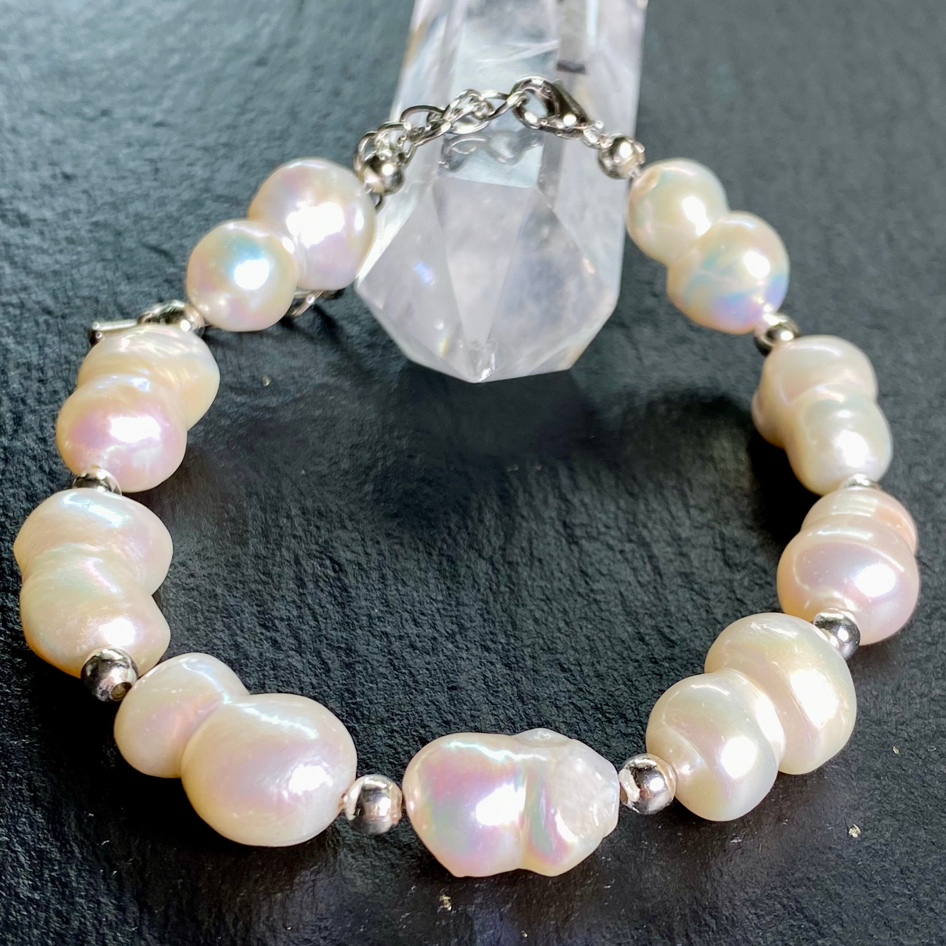 とても珍しいツイン(双子)の淡水パールで作ったブレスレットです。