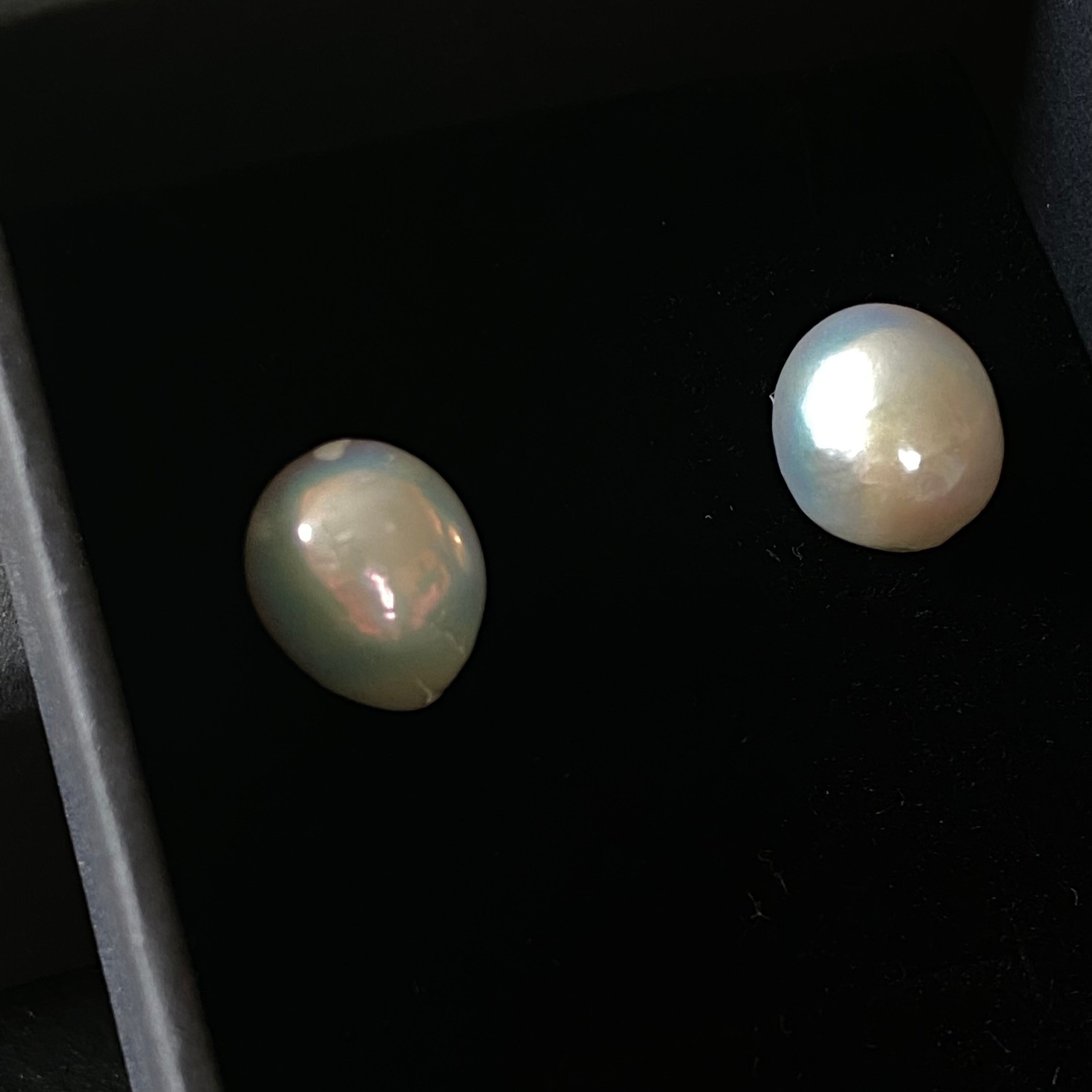 染めてない天然の照りの良い淡水バロックパールのピアスです。玉子のような可愛い形です。