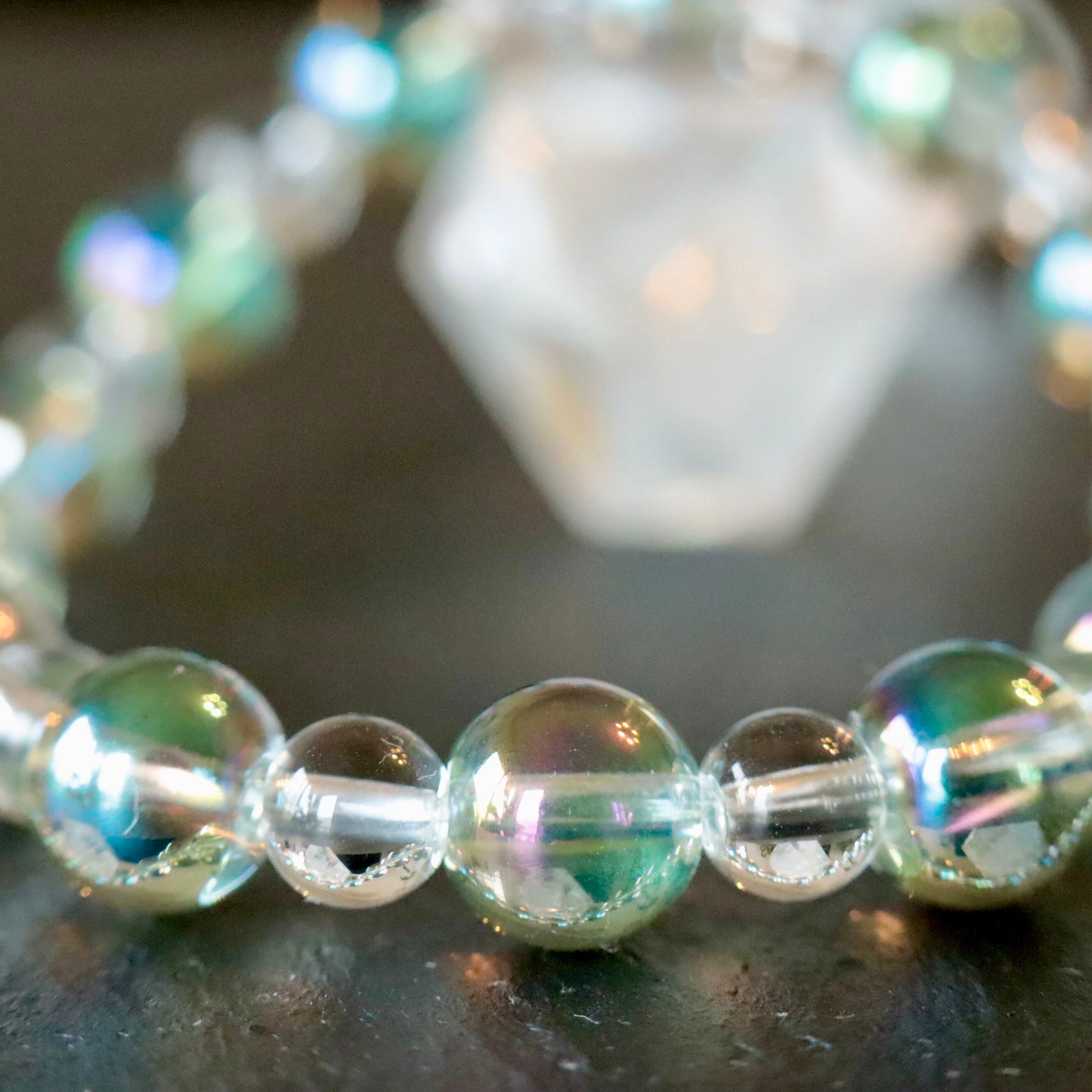 虹のエネルギーを宿したグリーンオーラクォーツは、持つ人の心と魂に神秘的な光を届けます。