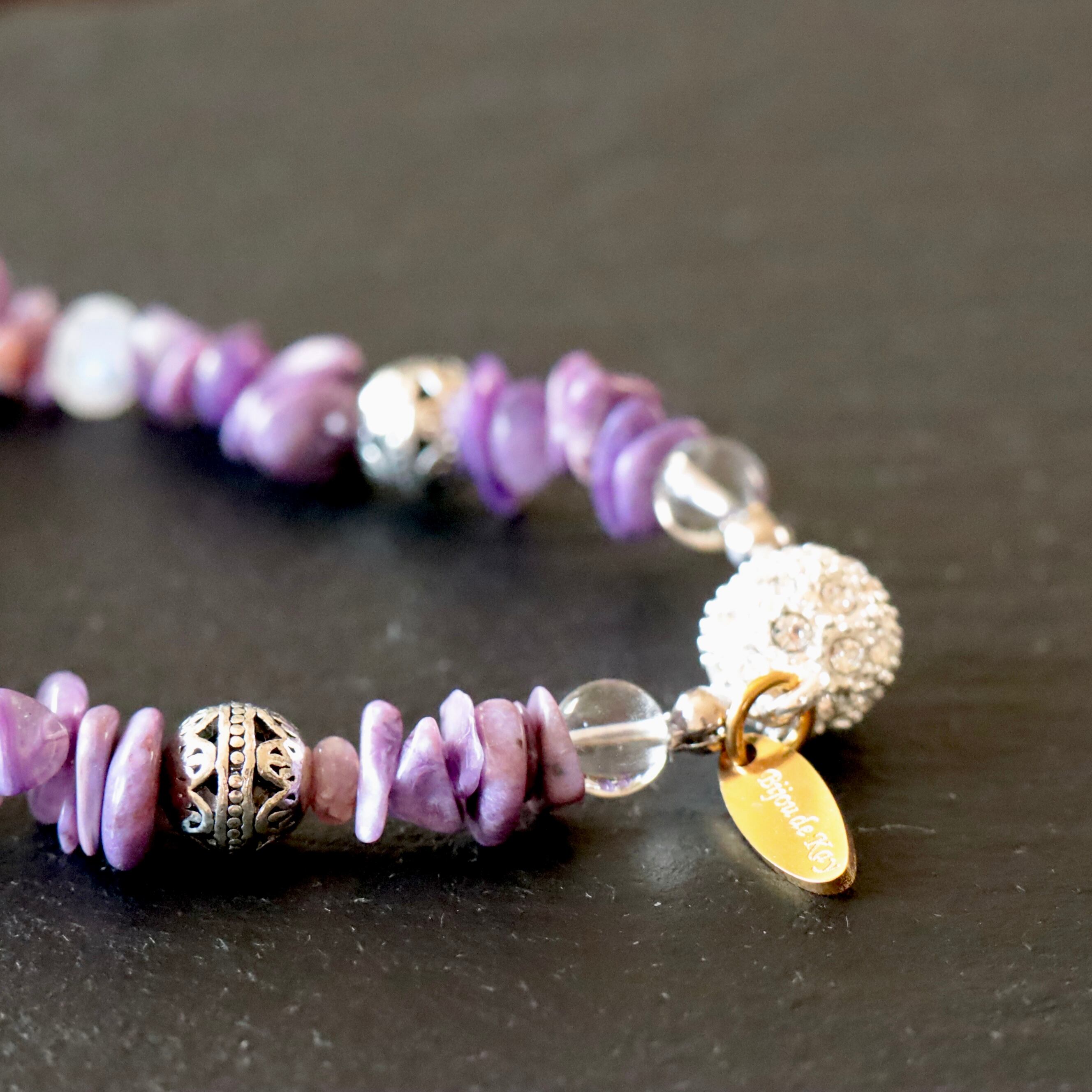 チャロアイト ラベンダーアメシスト ムーンストーン ブレスレットB0822-02 アメジスト