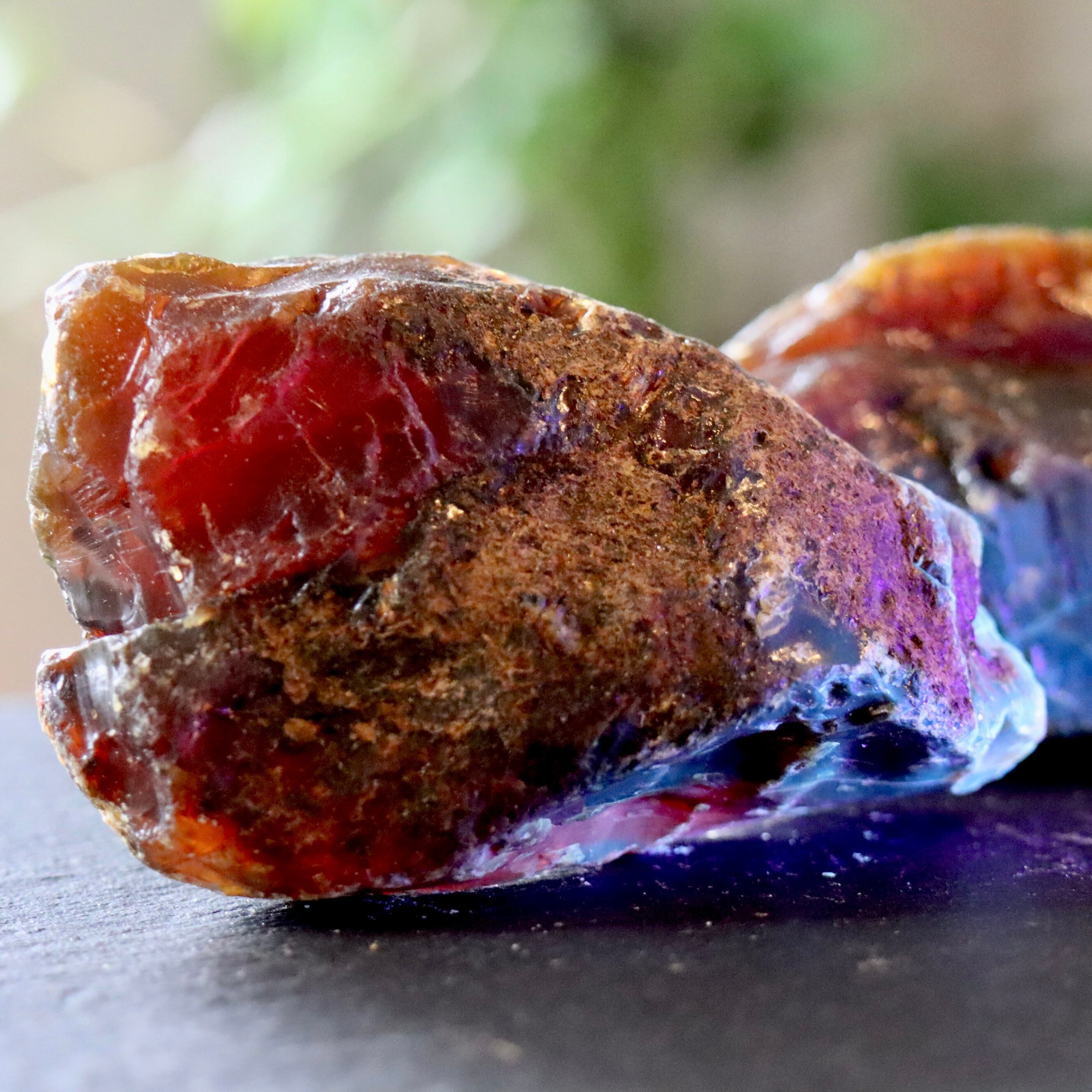 ドミニカ産などのアンバーと同じように、ブラックライトなどの強い紫外線に当たるとブルーに発色する蛍光性を持っているのも大きな特徴です。