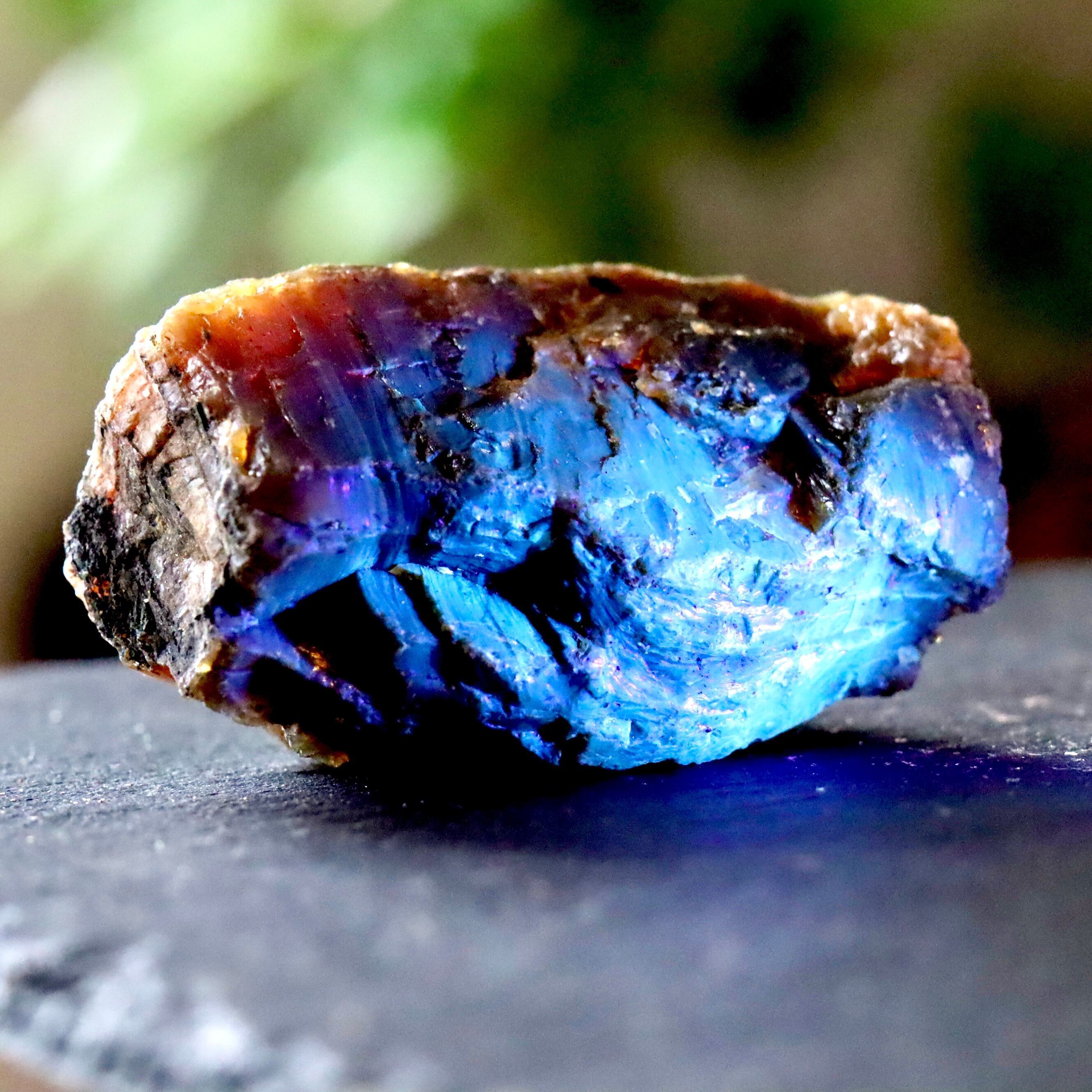 ドミニカ産などのアンバーと同じように、ブラックライトなどの強い紫外線に当たるとブルーに発色する蛍光性を持っているのも大きな特徴です。