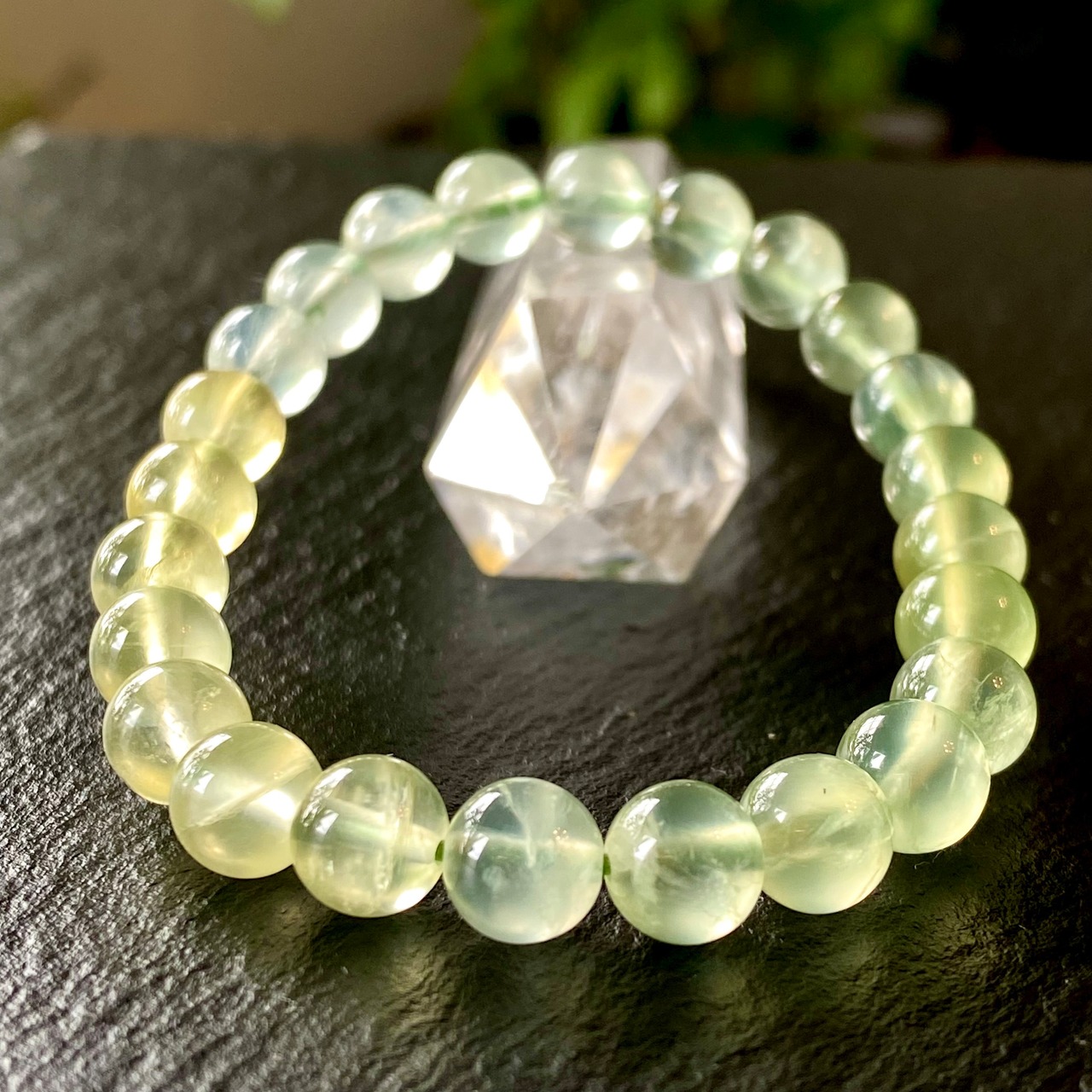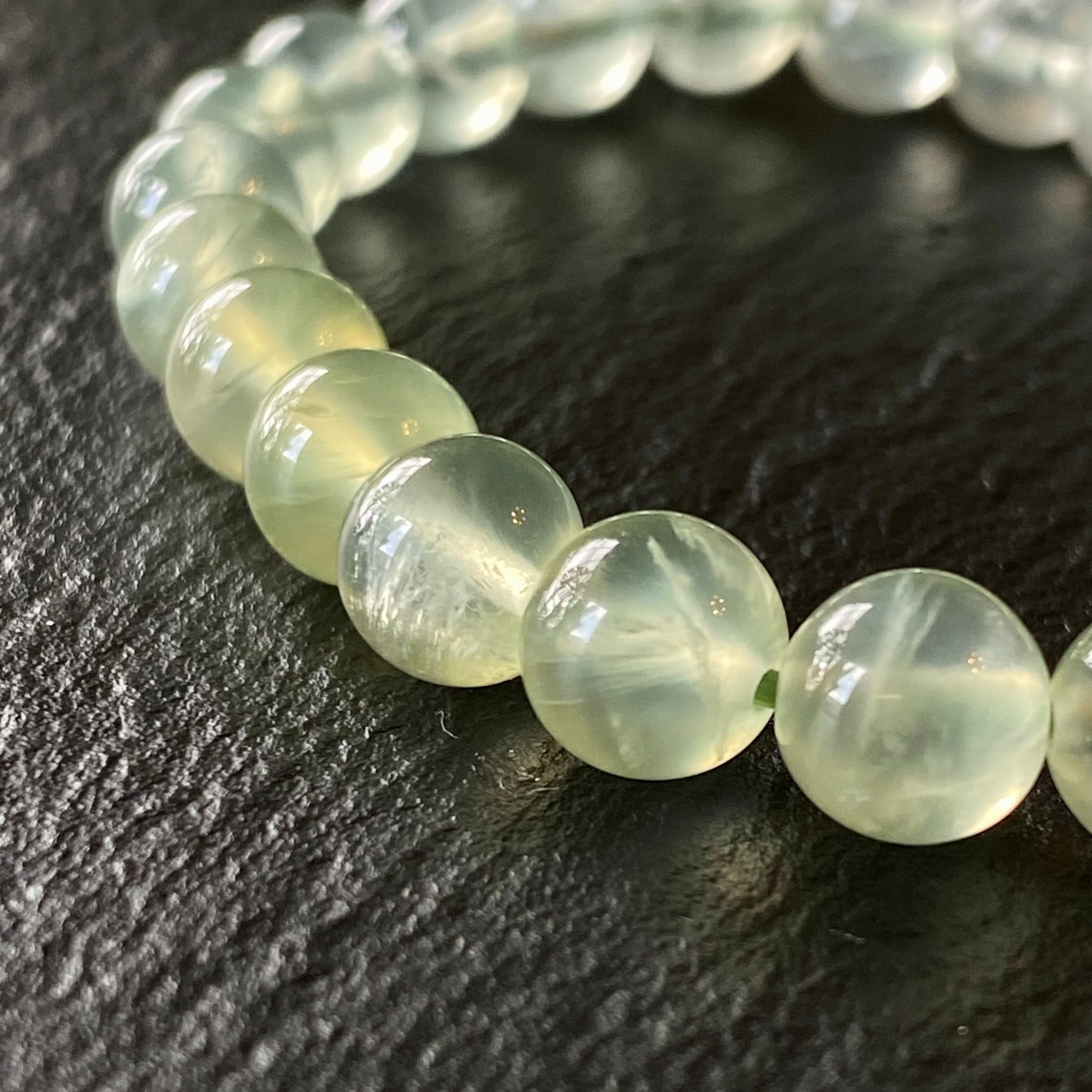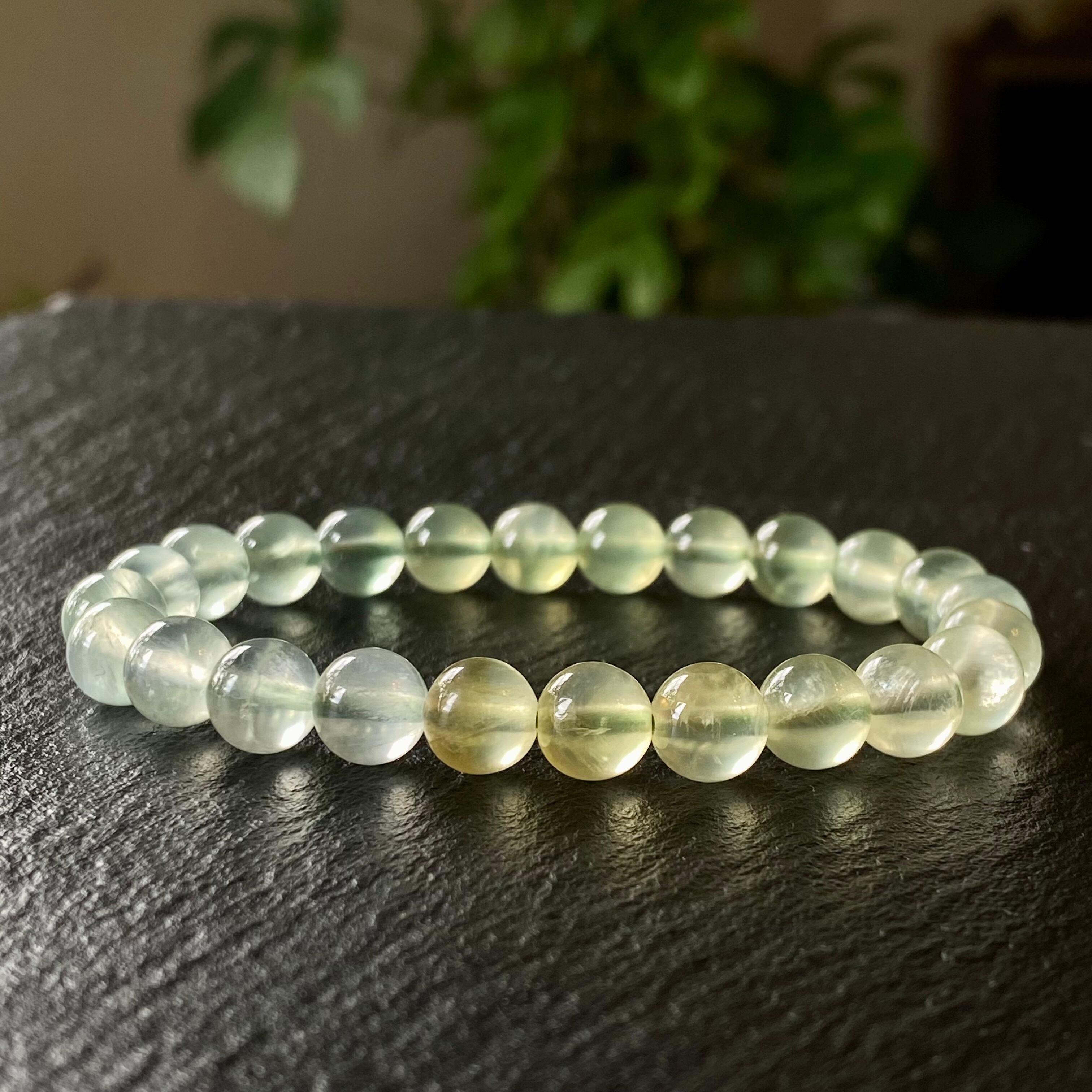 優しいイエローからグリーンのグラデーションがとても綺麗な爽やかなプレナイトブレスレットです。