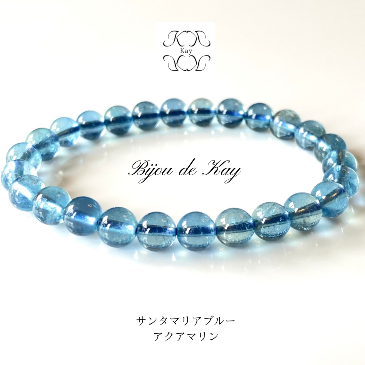 青の色味が強く、とても瑞々しいサンタマリアブルーアクアマリンのブレスレットです。