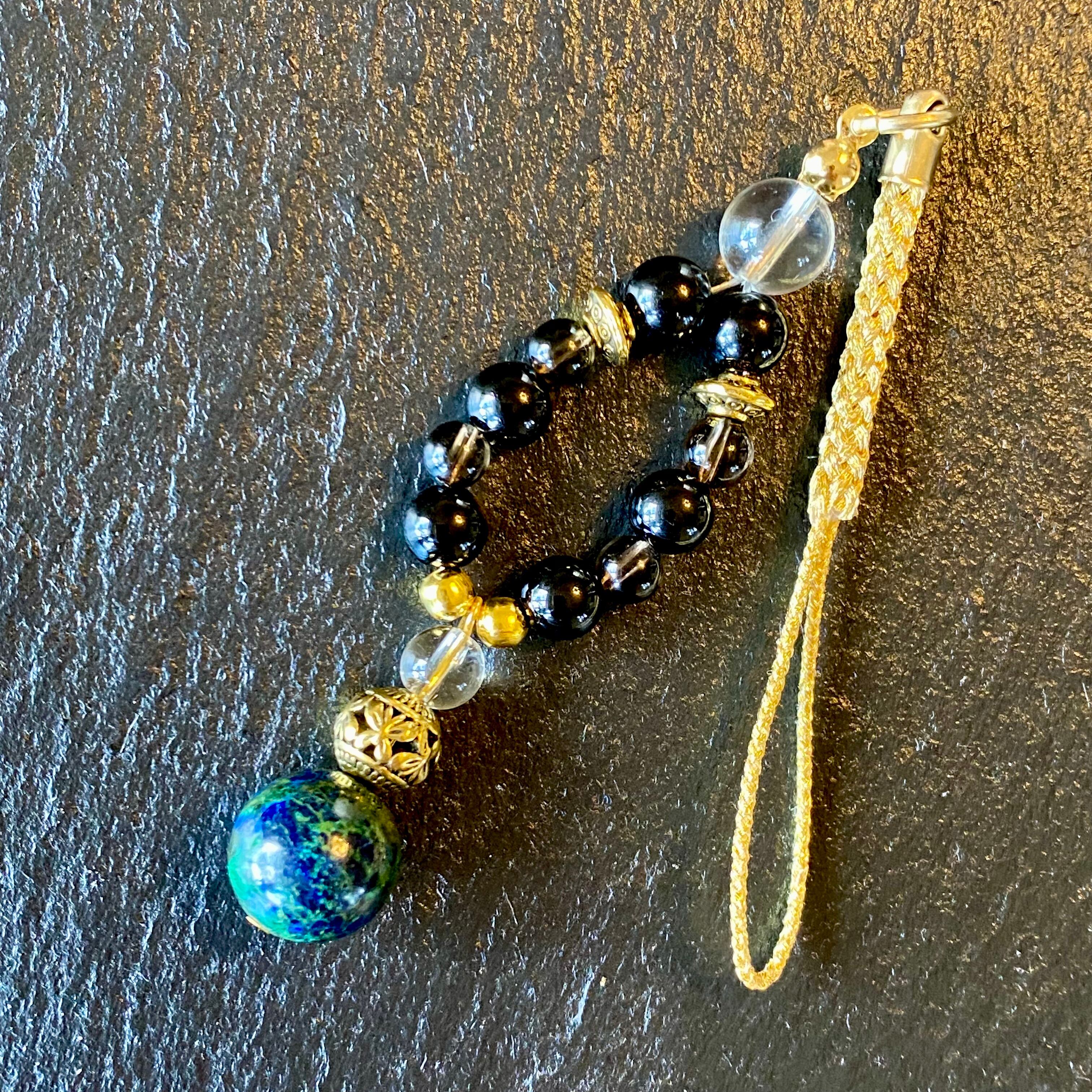 龍神様 御守り天然石 光波動石 ストラップ st082301 アジュロマラカイト マラカイト お守り