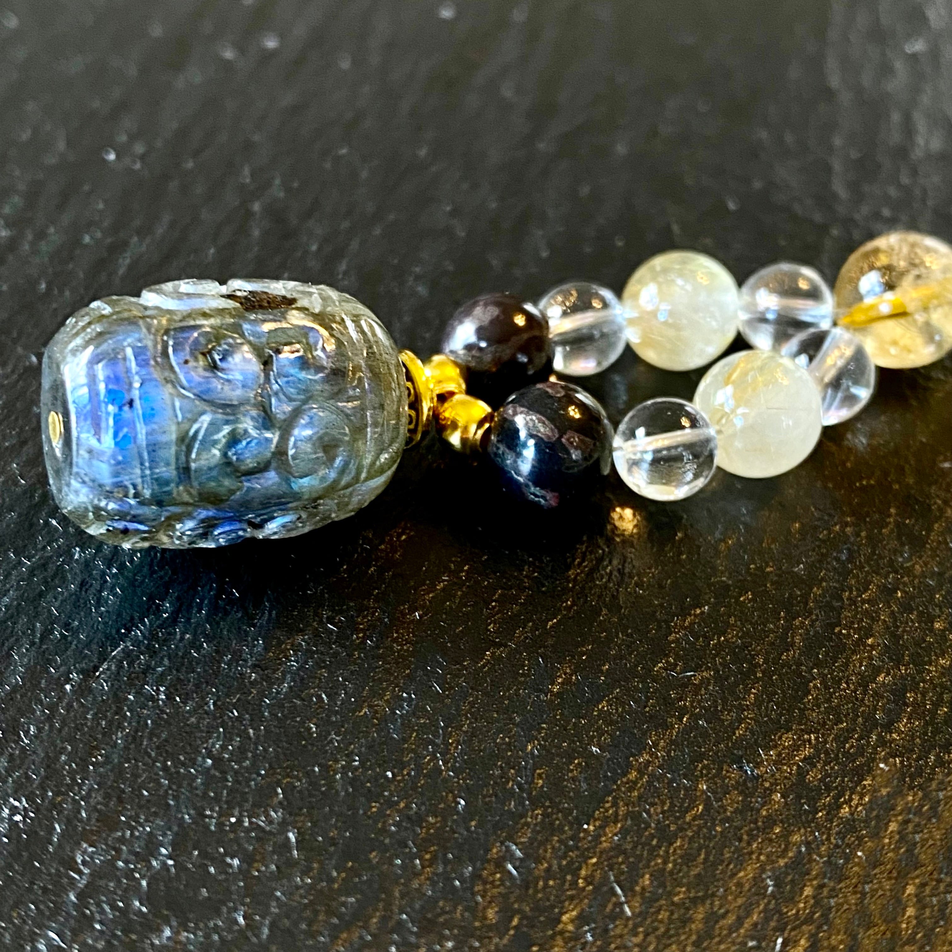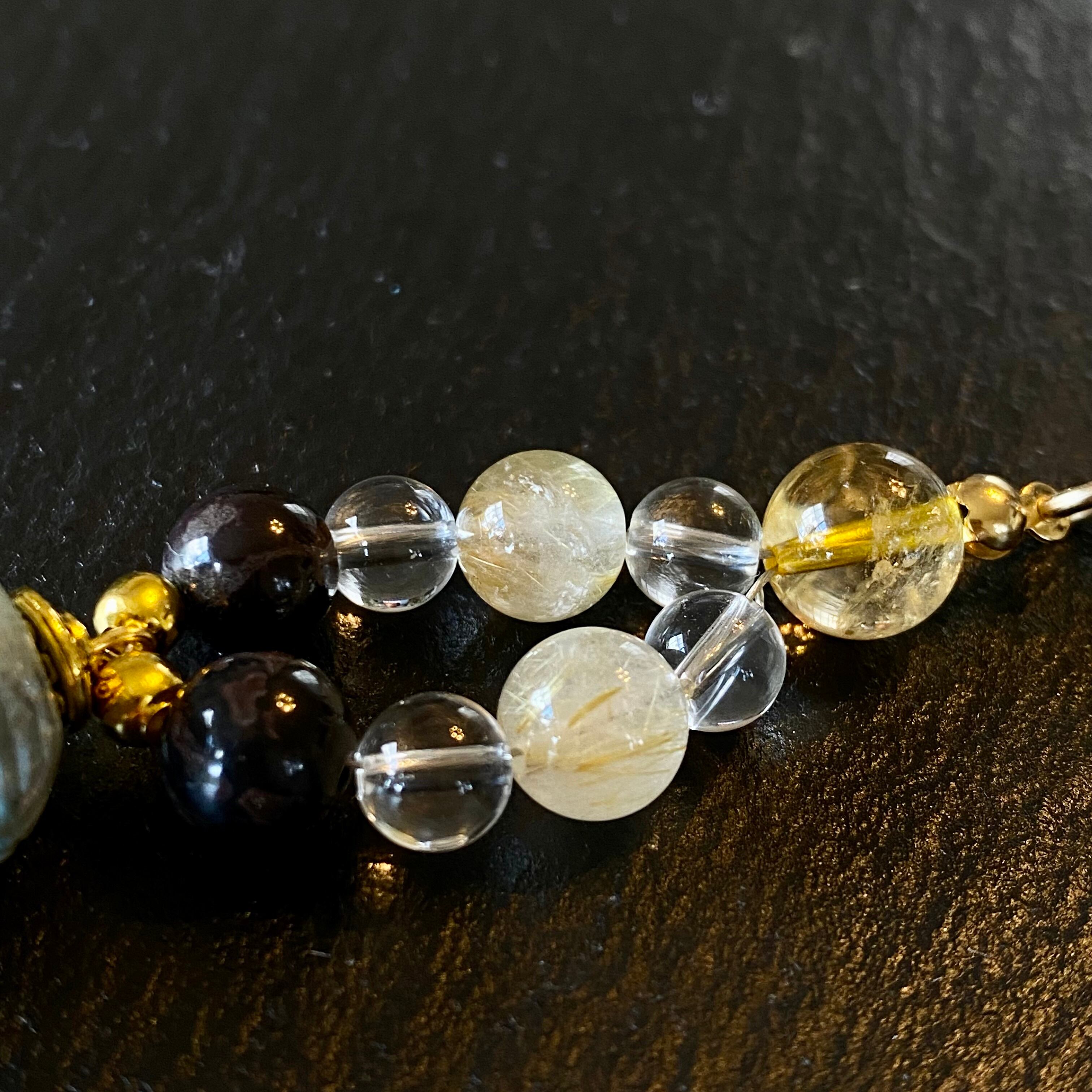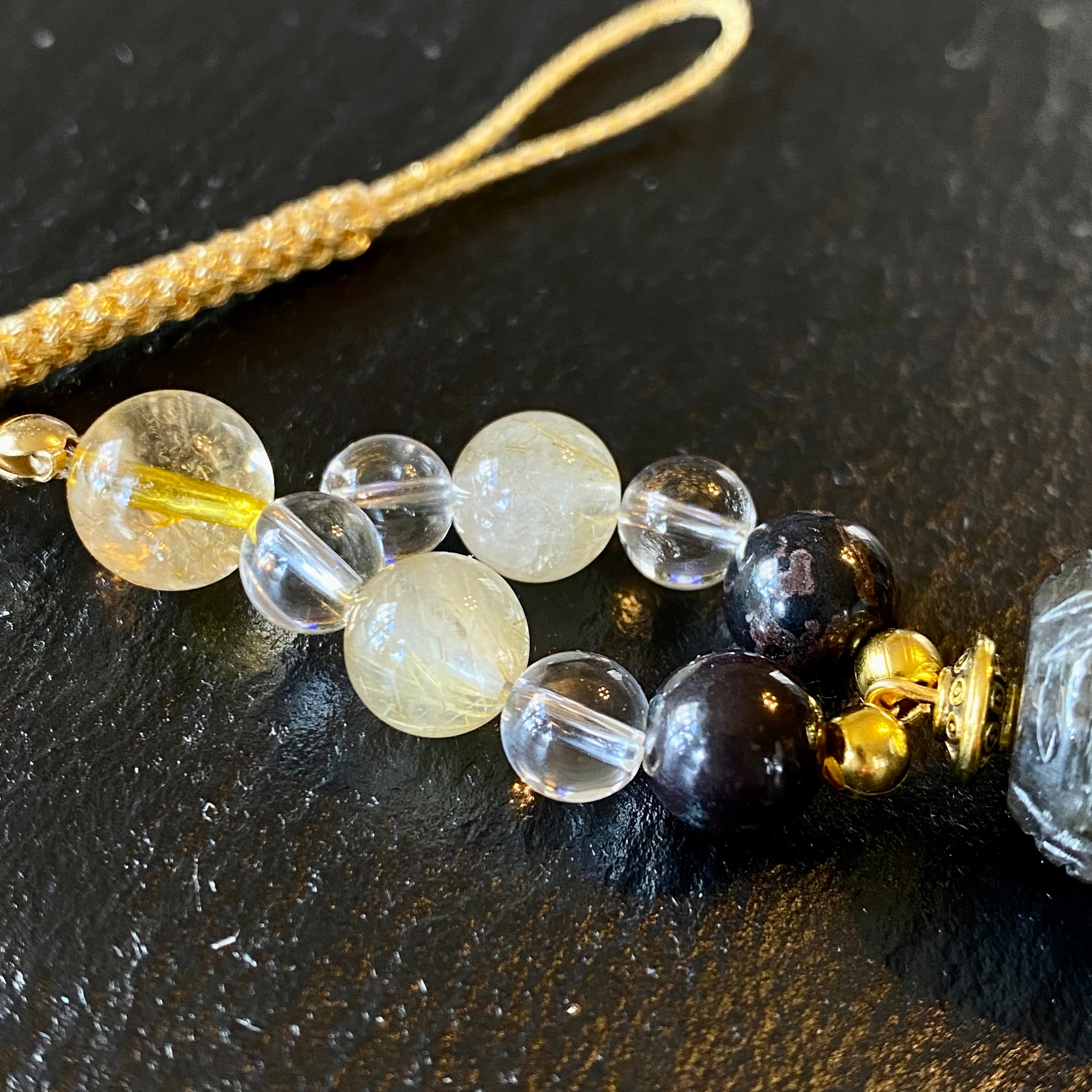 龍神様 御守り天然石 光波動石 ストラップ st082302 マニ車 ラブラドライト ルチルクォーツ 黒翡翠 シトリン お守り