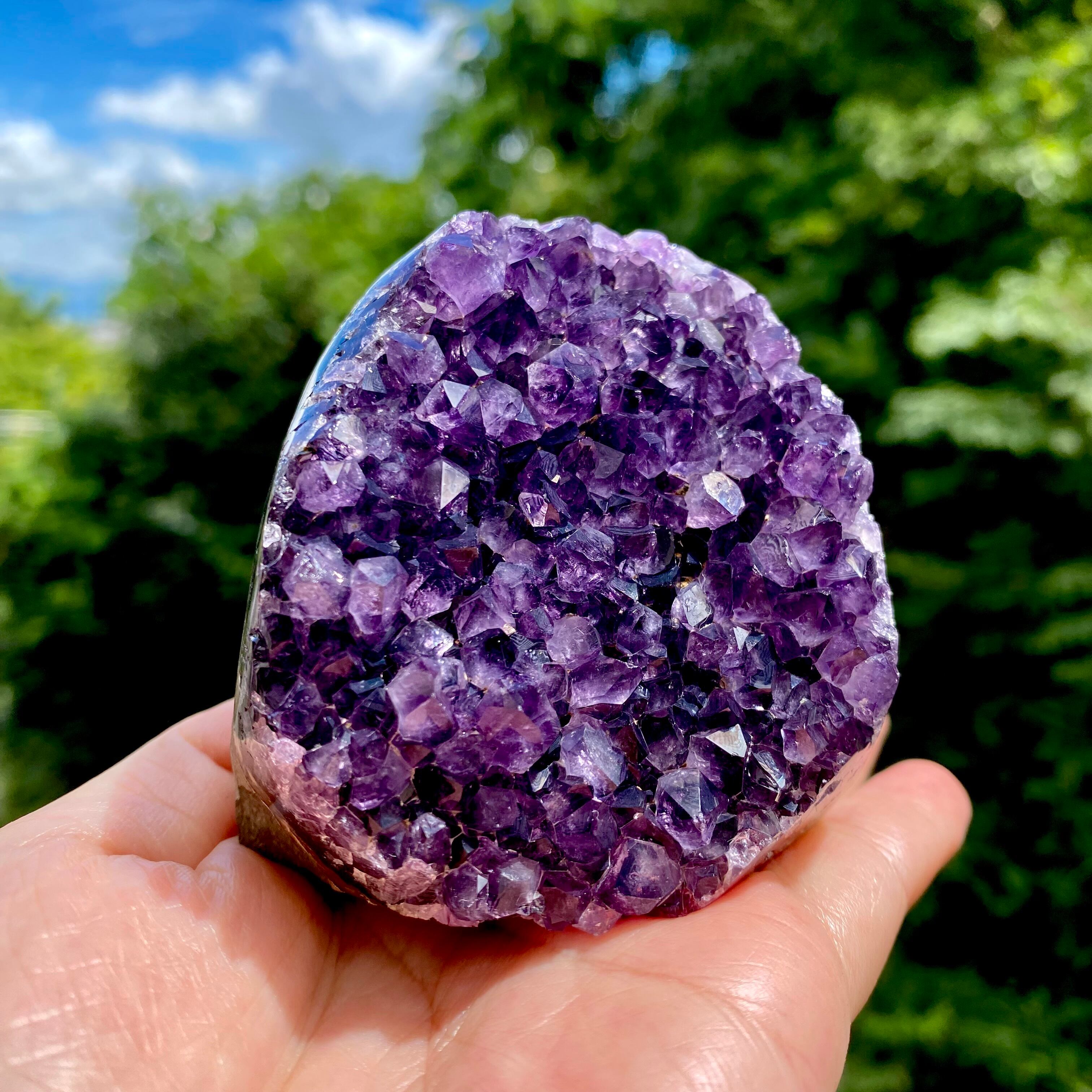 こちらはウルグアイ産の中でも紫色が濃く艶もあり、大変美しい結晶クラスターです。