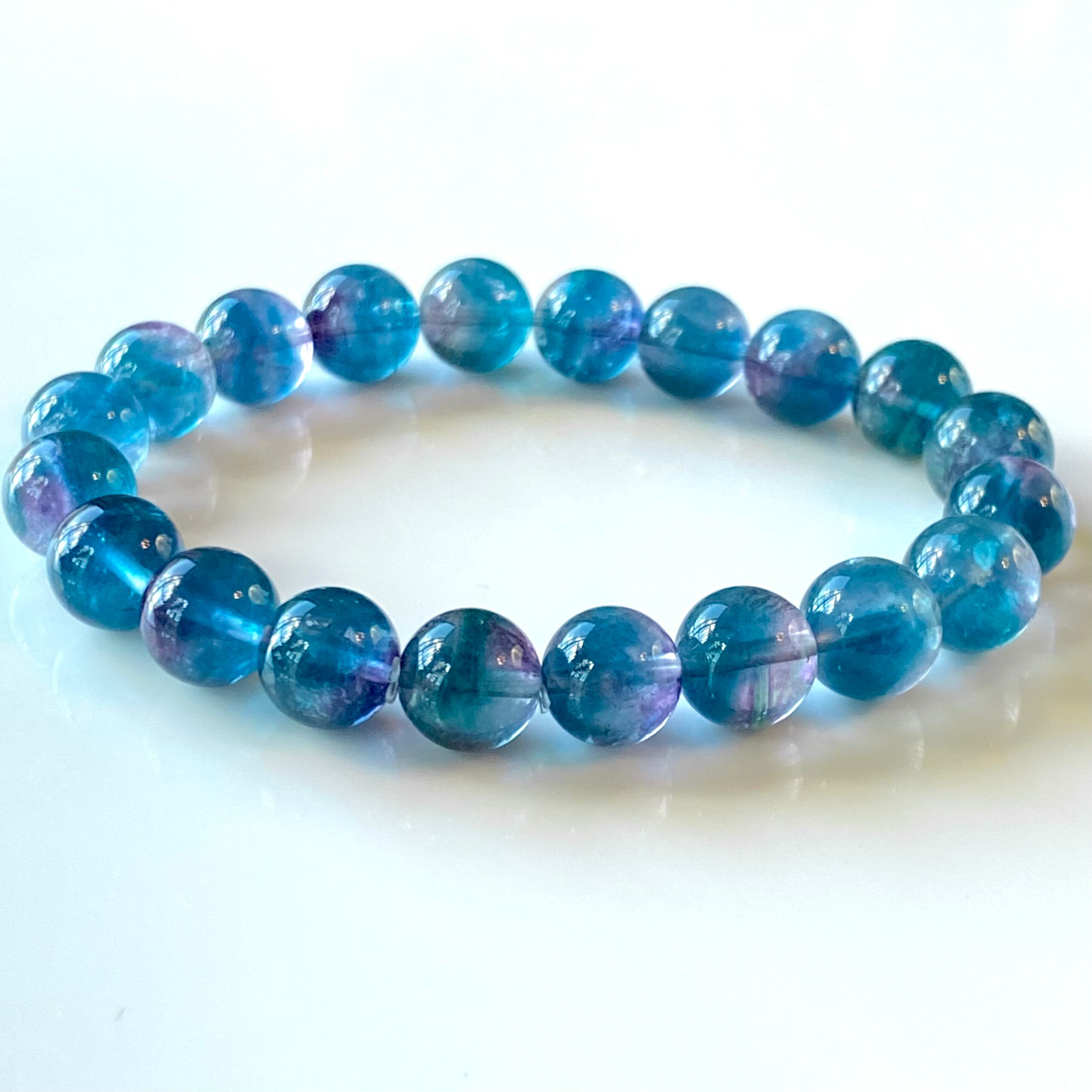 透明度が高く、ピンクとブルーがとっても可愛い色合いの超美品フローライトブレスレットです。