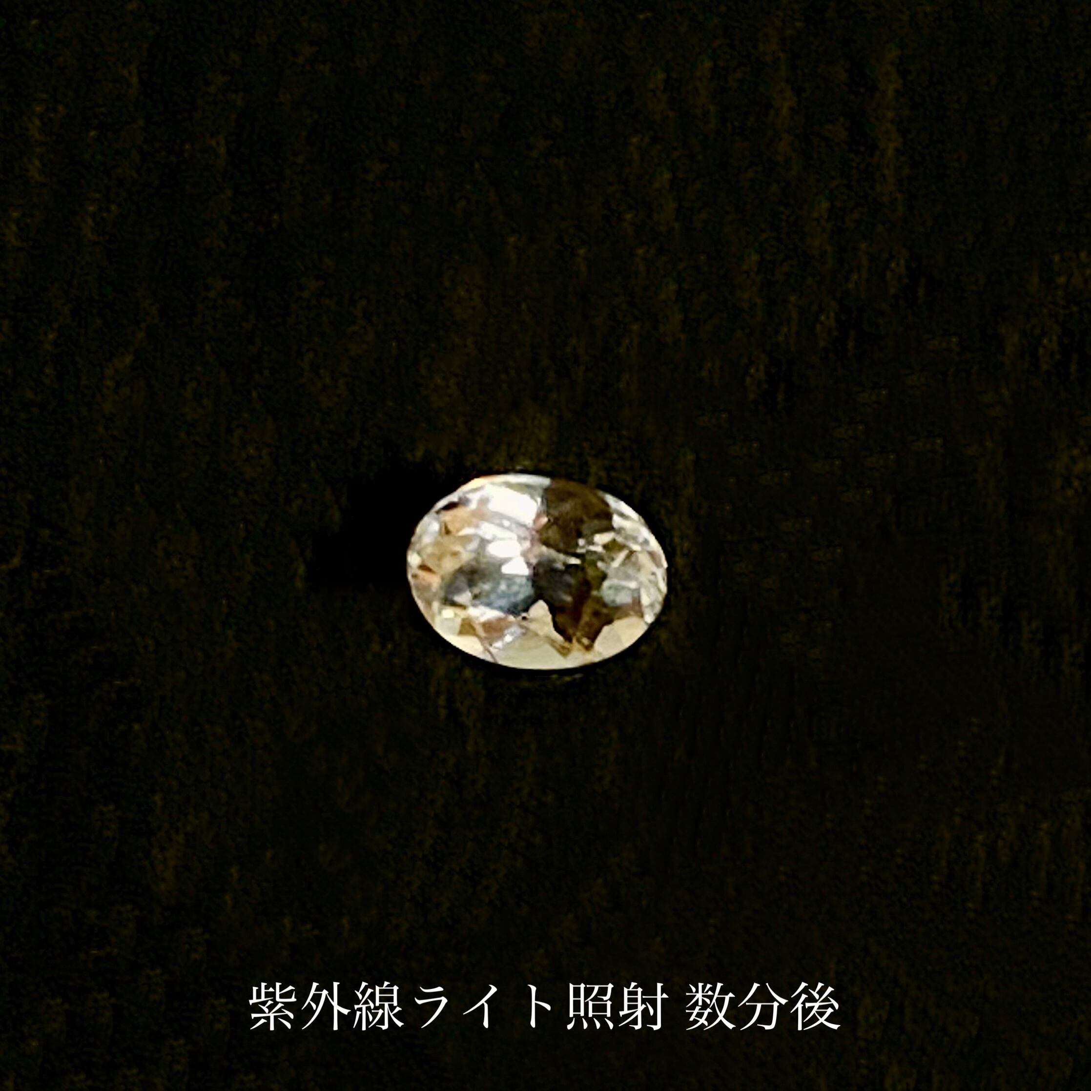 ・テネブレッセンススキャポライトは、紫外線を照射することで色が変化し、照射を外したあとは色が淡い色に残りそののち徐々に元の色に戻っていくという<テネブレッセンス効果>(同じ意味で、科学用語としては<フォトクロミズム効果>)を持っているスキャポライトです。