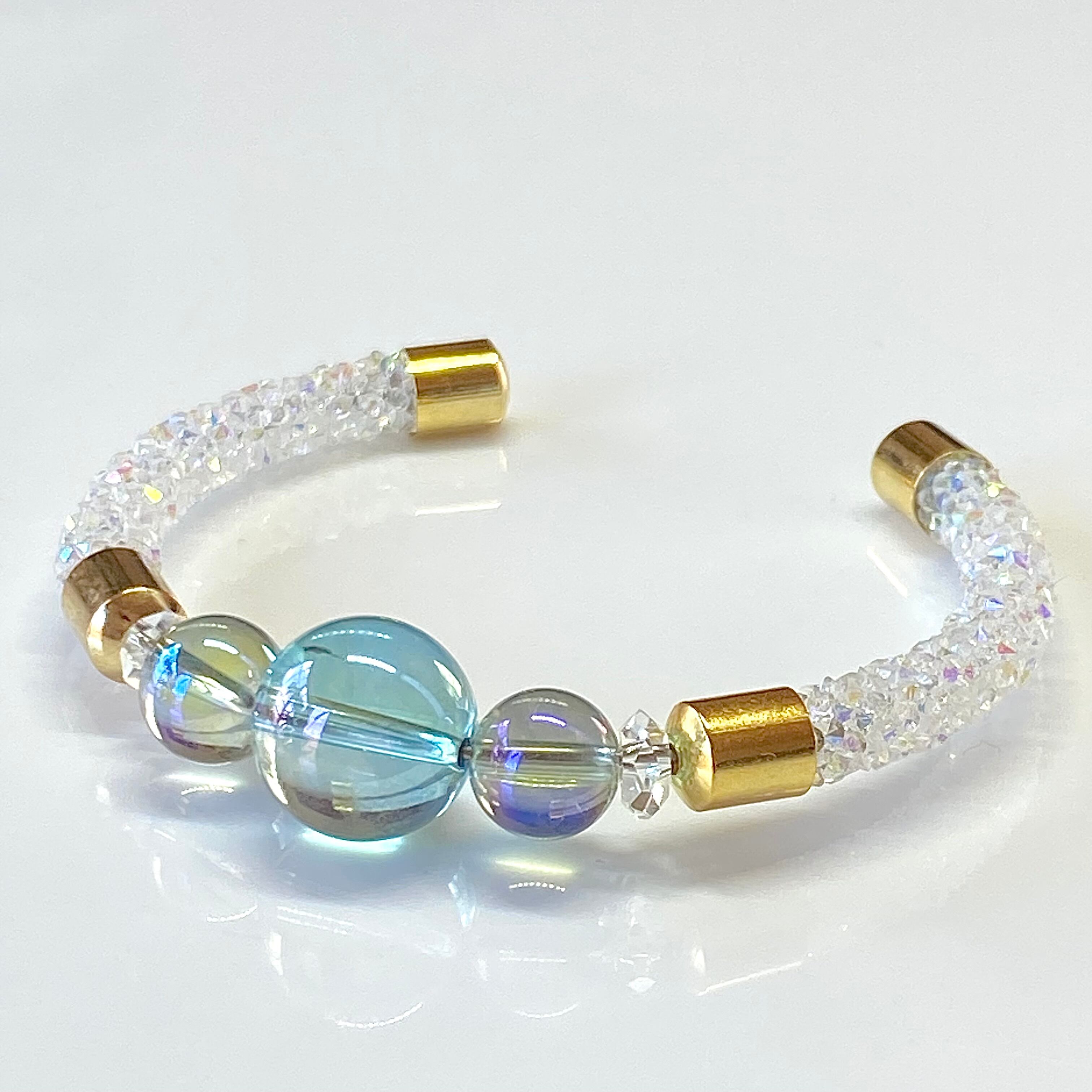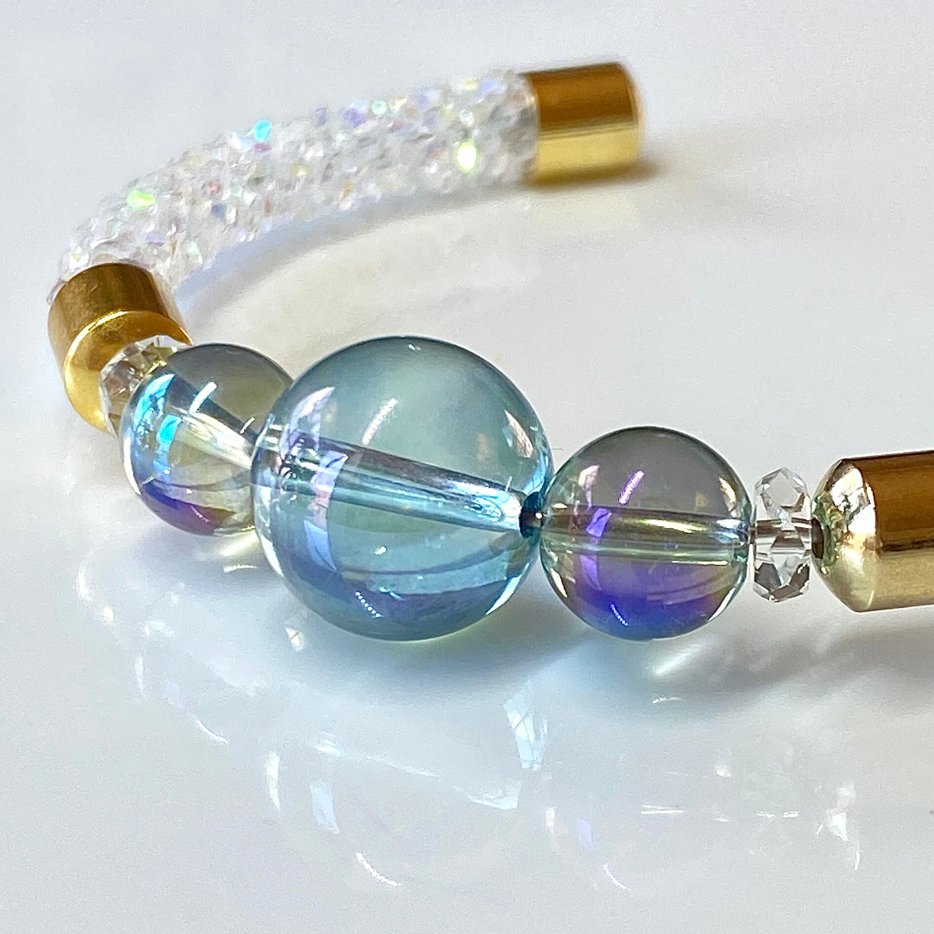 ⚫︎オーロラ クリスタルチューブを使用した光波動天然石ブレスレット。