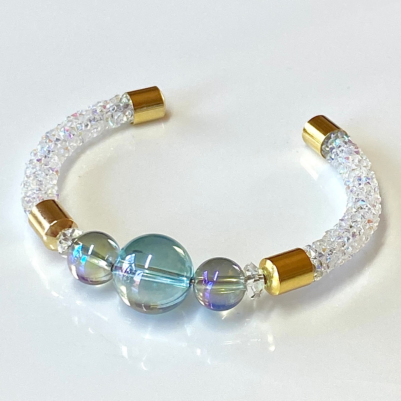 アクアオーラクォーツ グリーンオーラクォーツ 光波動 ブレスレット B1123-08 水晶