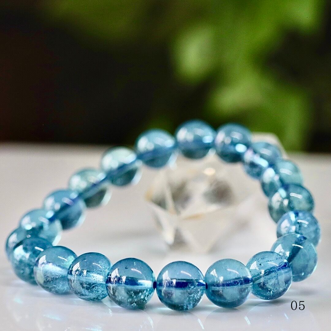 極上 SA サンタマリアブルー アクアマリン 9.5㎜ 光波動 ブレスレット B0524-05
