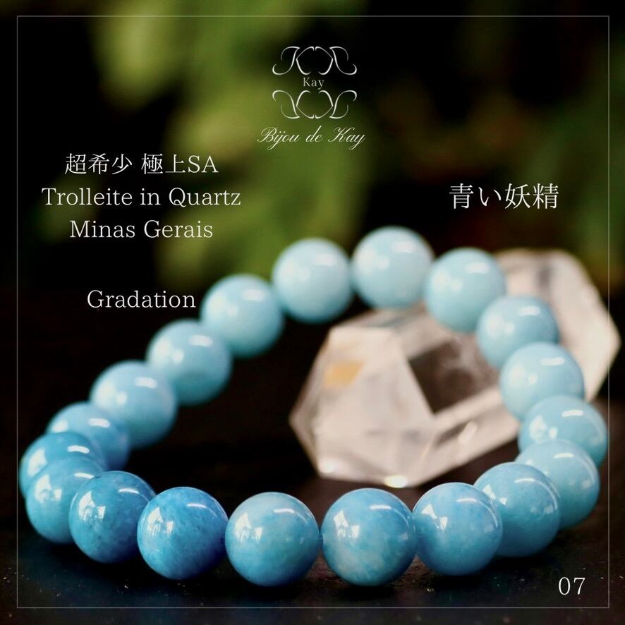 青い妖精 超希少 極上 SA トロレアイトインクォーツ グラデーション 約10.5㎜ 光波動 ブレスレット B0524-07 トロレアイト
