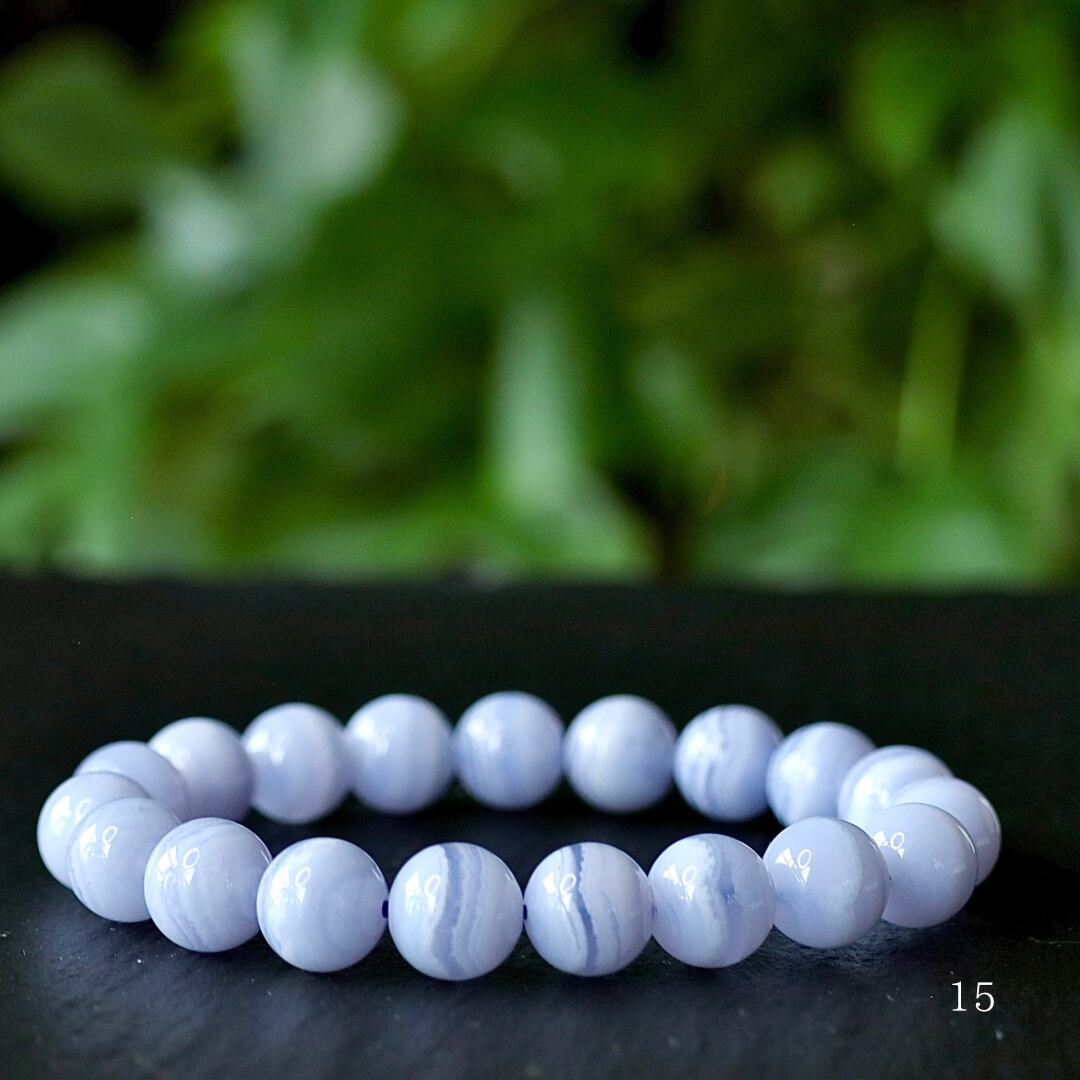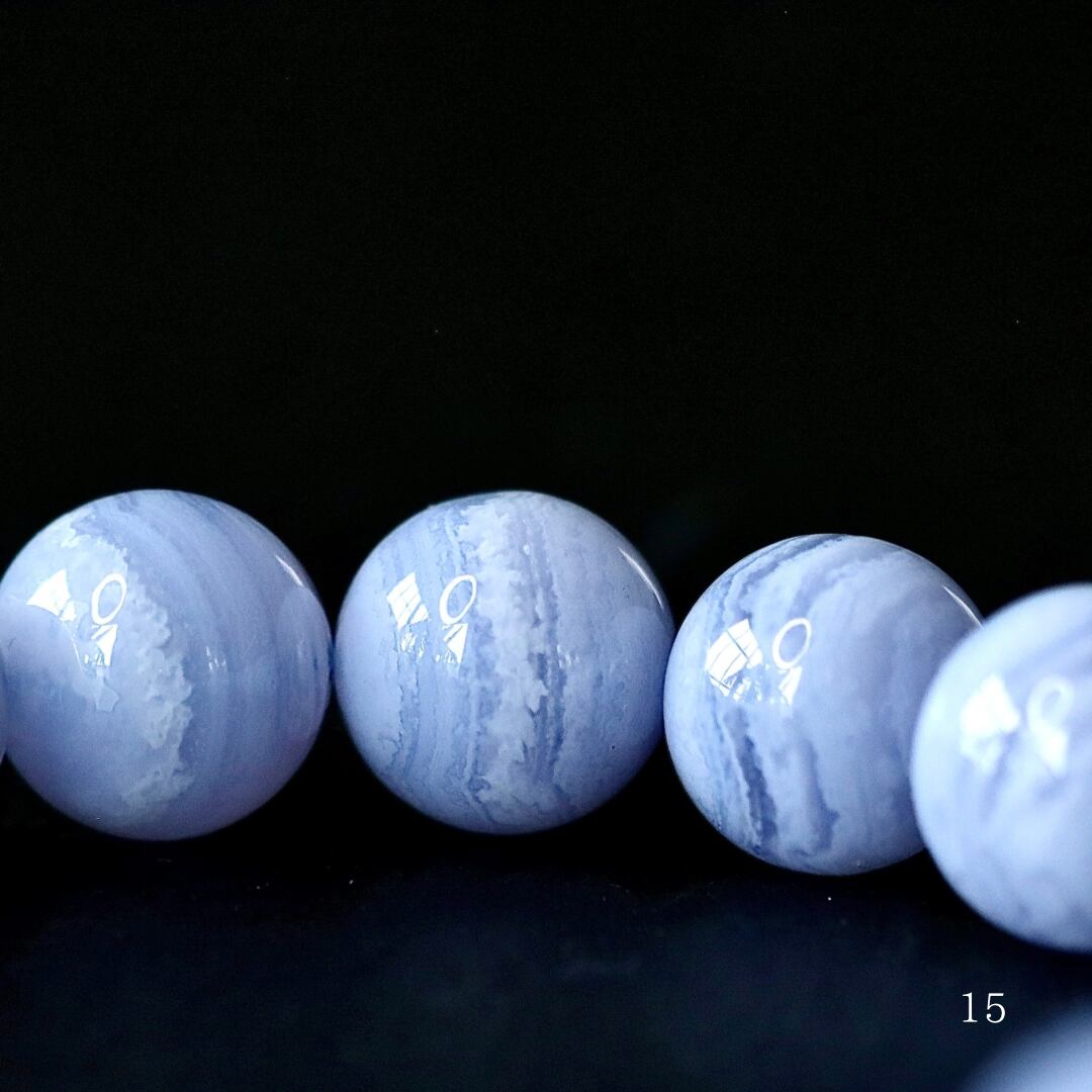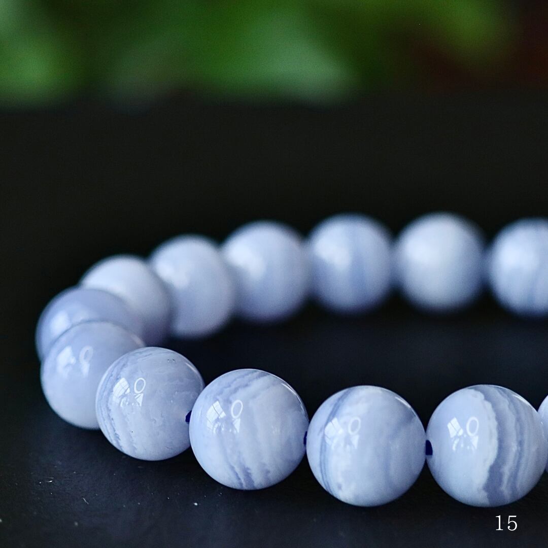 超美品 全玉 美レース ブルーレースアゲート 光波動 ブレスレット B0524-15