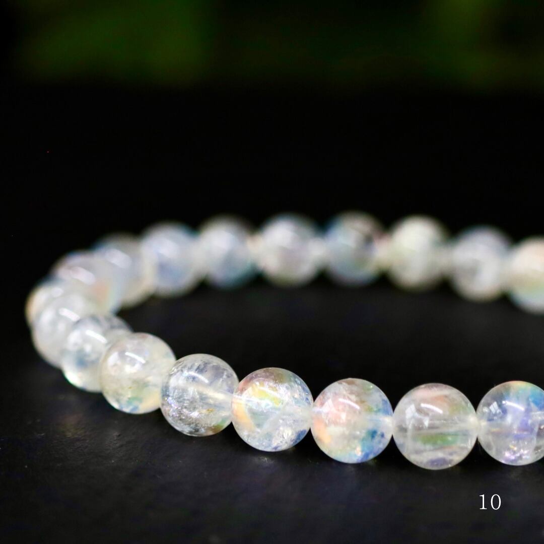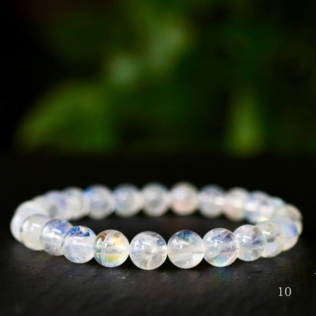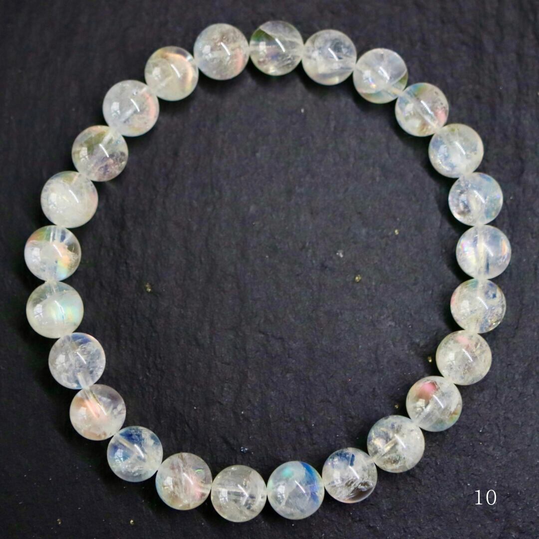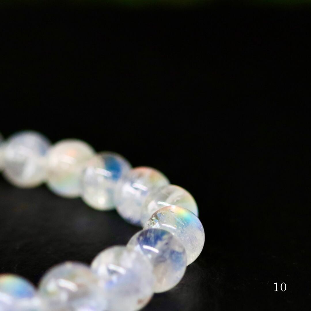 激レア 最高発色 最高品質 高透明 全玉 レインボー ムーンストーン 光波動 ブレスレット B2405-10