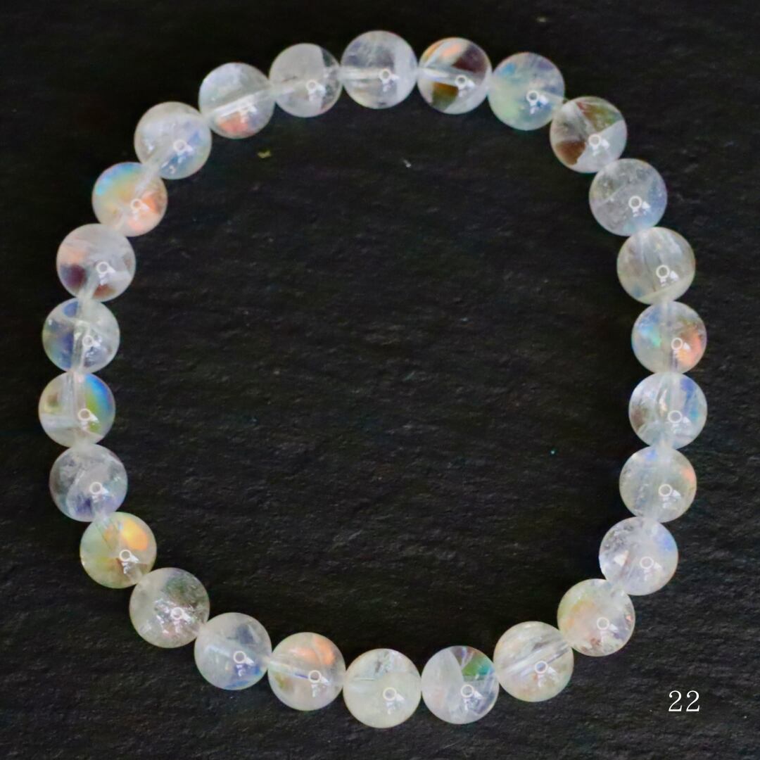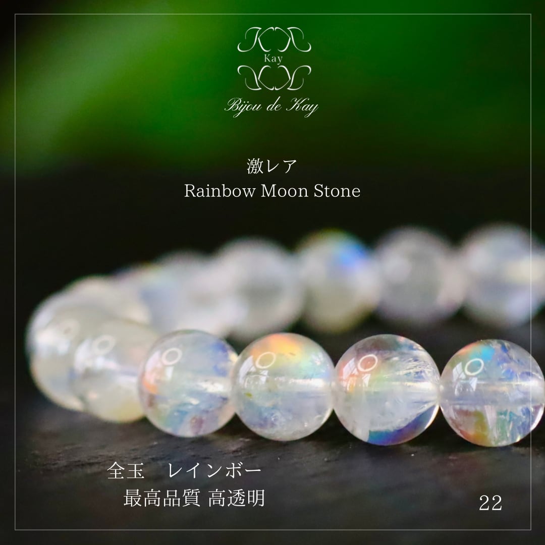 激レア 最高発色 最高品質 高透明 全玉 レインボー ムーンストーン 光波動 ブレスレット B2405-22