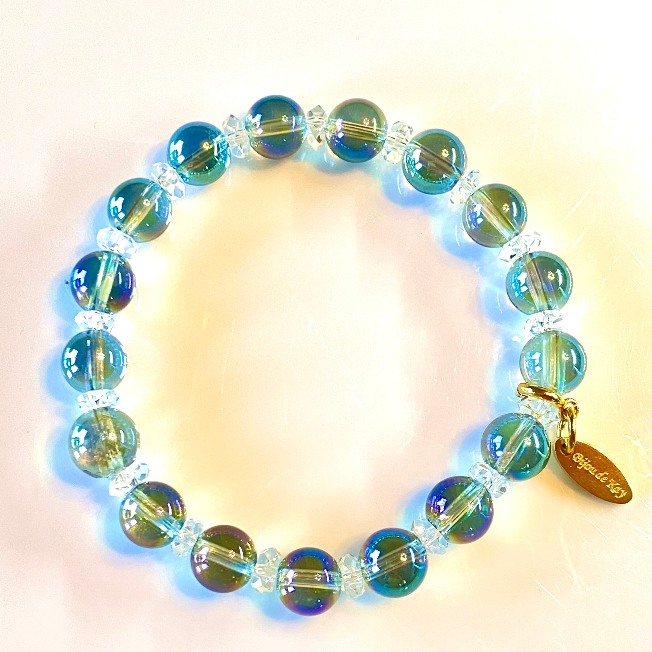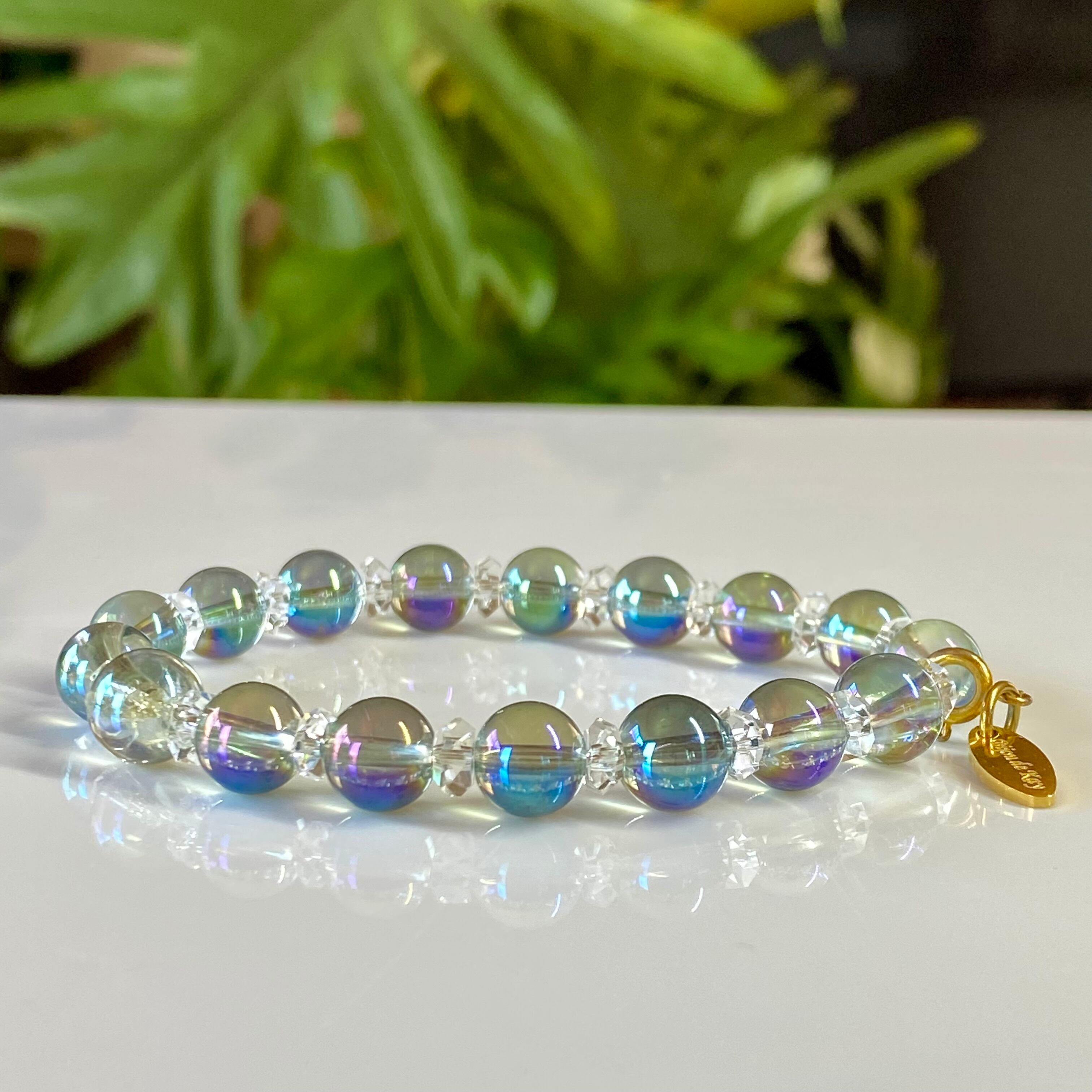 グリーンオーラクォーツ カット水晶 光波動 ブレスレット B0924-05 グリーンオーラ 水晶