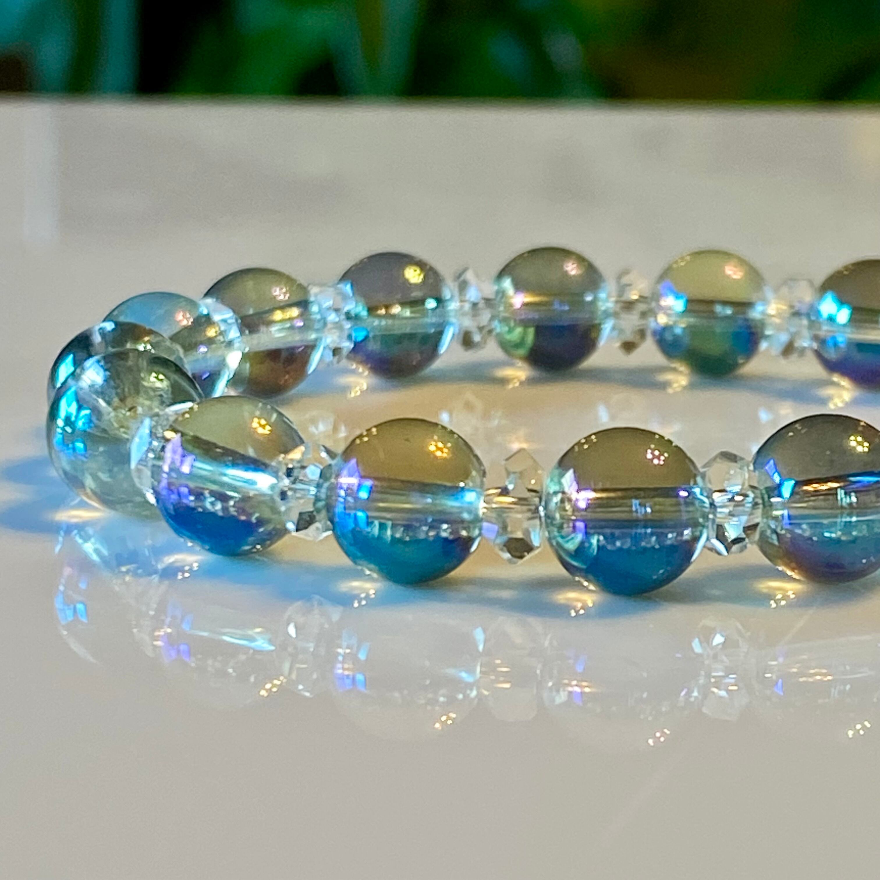 虹のエネルギーを宿したグリーンオーラクォーツは、持つ人の心と魂に神秘的な光を届けます。