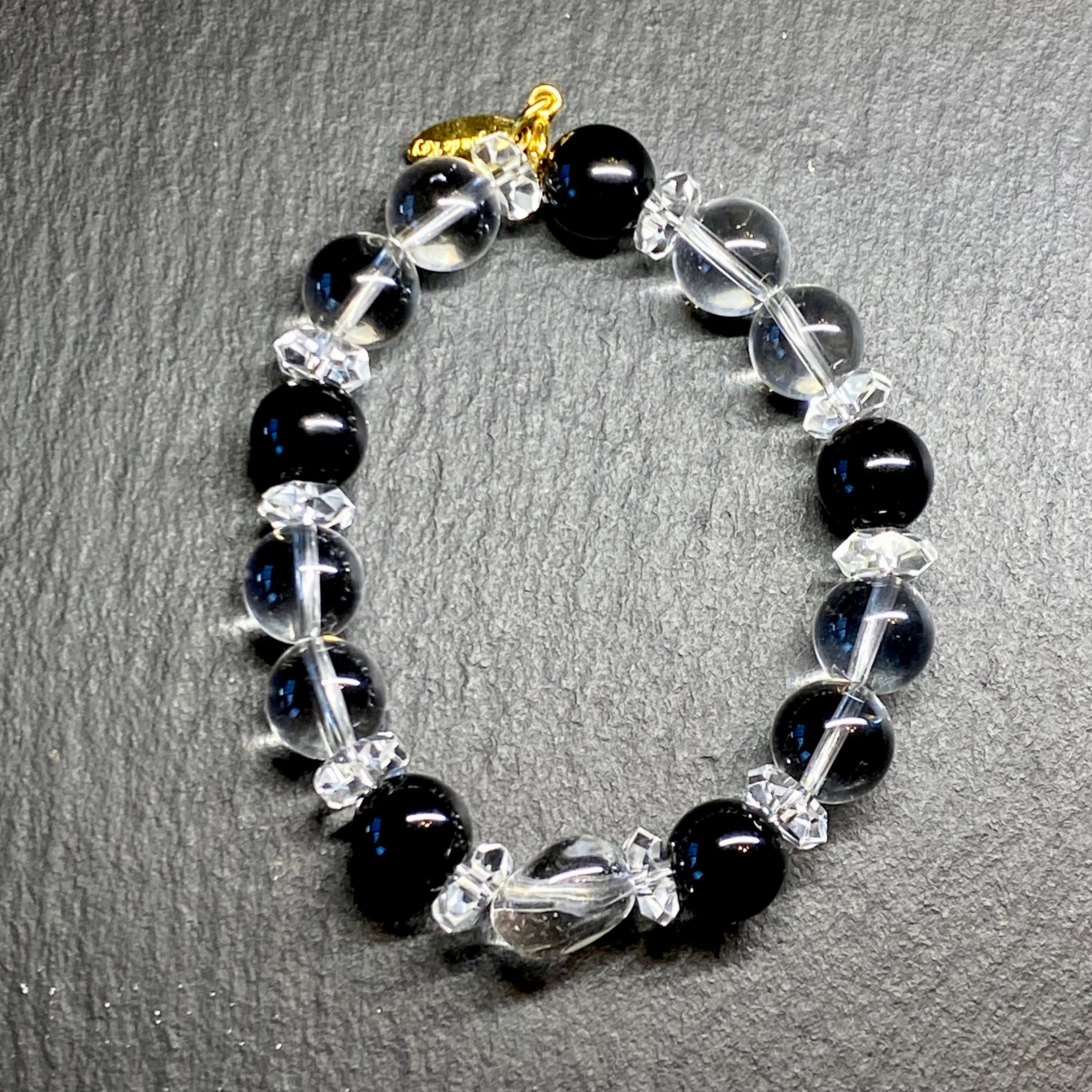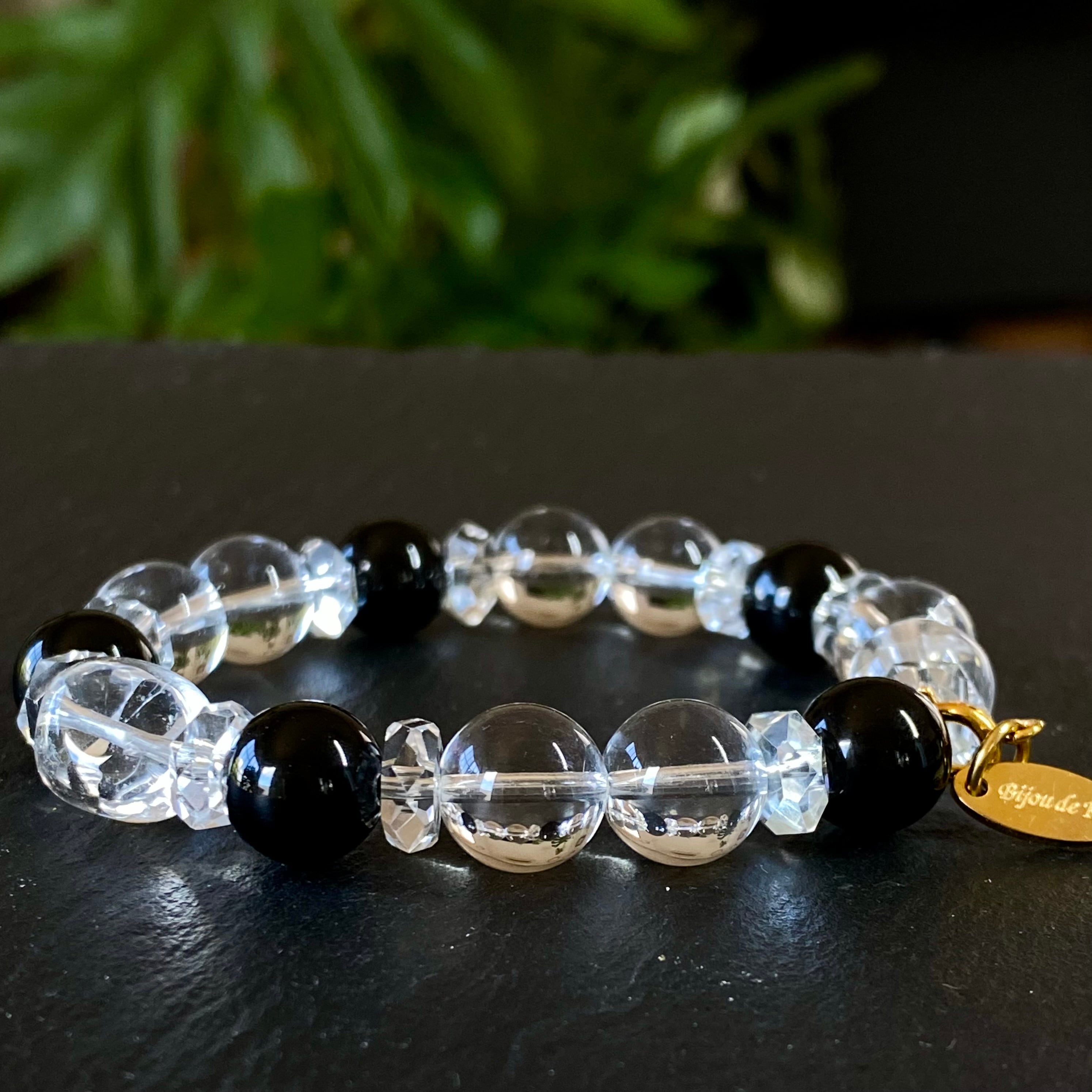 他では見られない特別な天然石を使用し、最高品質のモリオンと水晶を組み合わせた、光波動のエネルギーを放つブレスレットです。その美しい輝きとともに、天然石が持つエネルギーが、あなたを優しく包み込み、ポジティブな効果をもたらします。