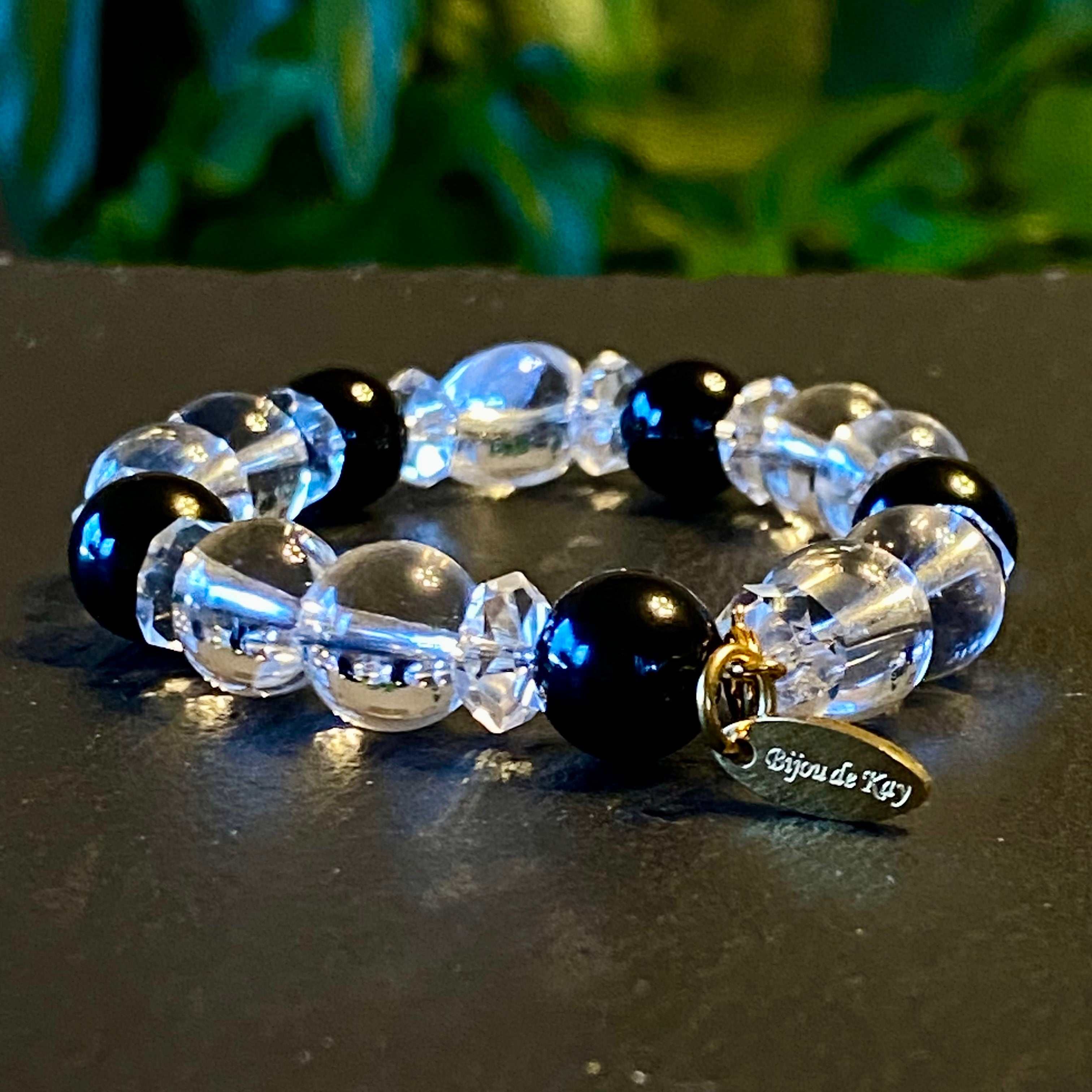 モリオンと水晶のそれぞれの効果を強調し、ブレスレットのエネルギー面での魅力を際立たせました。